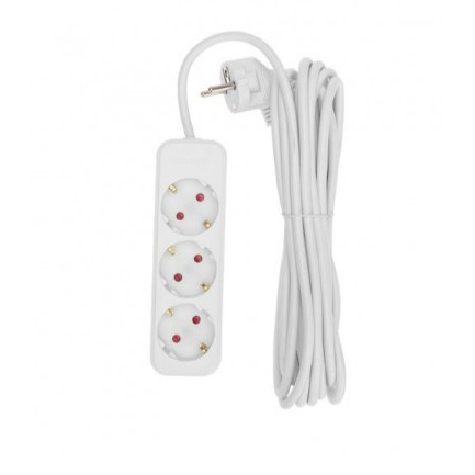 Мощность – 3500Вт. Сечение провода – 3х1,0мм². Тип вилки – угловая. Цвет удлинителя – белый.