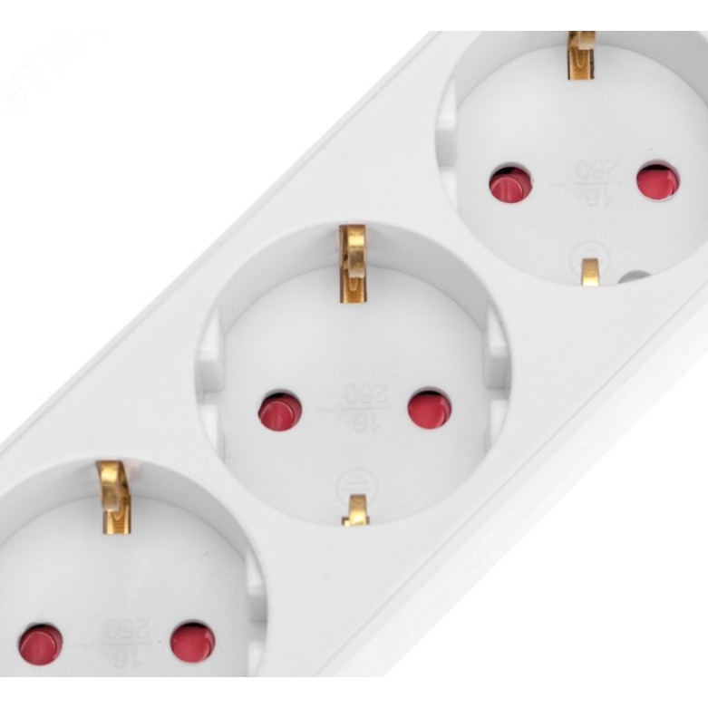 Удлинитель оснащен защитными шторками, которые предназначены для предотвращения случайного попадания пыли, влаги или посторонних предметов в гнезда удлинителя, что способствует долговечности самого устройства и подключенных к нему приборов, а также обеспечивает защиту от поражения электрическим током.