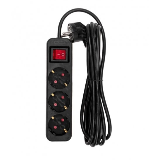 Мощность – 3500Вт. Сечение провода – 3х1,0мм². Тип вилки – угловая. Цвет удлинителя – черный.