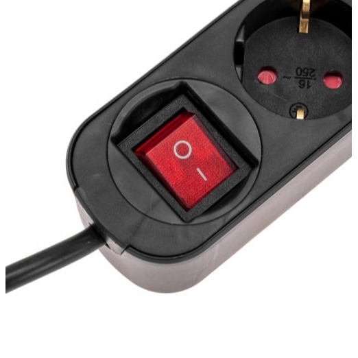 Наличие 3 гнезд позволяет одновременно подключить несколько электроприборов. Каждое гнездо имеет заземление, что гарантирует безопасность при использовании.