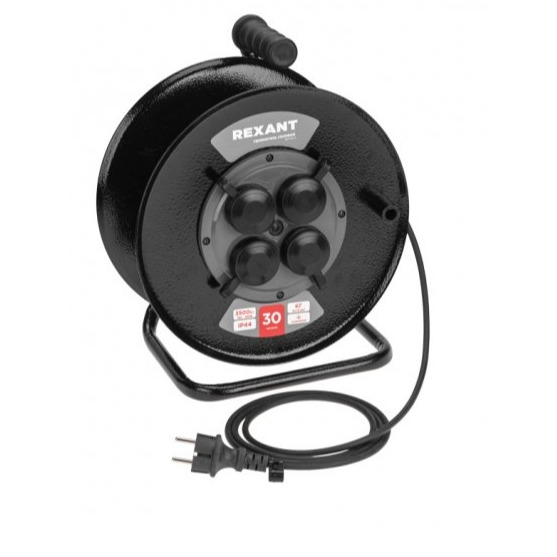 Удлинитель силовой КГ на катушке 4 гнезда, с/з, 30м, 3х1,5мм?, IP44 c защитными крышками, металлическая катушка REXANT Силовой удлинитель REXANT предназначен для подключения электрических приборов и электроинструментов. Незаменим в случае, когда стандартной длины шнура недостаточно для питания от стационарных розеток. Устройство оснащено четырьмя гнездами, что позволяет подключить несколько устройств. С автоматической защитой от перегрузки. Универсальная электрическая вилка на конце провода обеспечит подключение к розеткам российского и европейского стандарта. Для удобства транспортировки и хранения шнур поставляется на металлической катушке. Удлинитель с заземлением длиной 30 метров позволяет удобно разместить приборы на нужном расстоянии от розетки, а высококачественные материалы и конструкция обеспечивают безопасность и надежность работы. ВНИМАНИЕ! Перед включением максимальной нагрузки необходимо полностью размотать шнур.