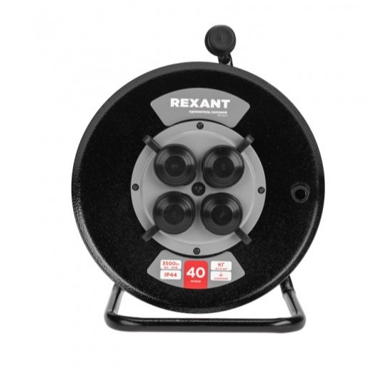 Удлинитель силовой КГ на катушке 4 гнезда, с/з, 40м, 3х1,5мм?, IP44 c защитными крышками, металлическая катушка REXANT Силовой удлинитель REXANT предназначен для подключения электрических приборов и электроинструментов. Незаменим в случае, когда стандартной длины шнура недостаточно для питания от стационарных розеток. Устройство оснащено четырьмя гнездами, что позволяет подключить несколько устройств. С автоматической защитой от перегрузки. Универсальная электрическая вилка на конце провода обеспечит подключение к розеткам российского и европейского стандарта. Для удобства транспортировки и хранения шнур поставляется на металлической катушке. Удлинитель с заземлением длиной 40 метров позволяет удобно разместить приборы на нужном расстоянии от розетки, а высококачественные материалы и конструкция обеспечивают безопасность и надежность работы. ВНИМАНИЕ! Перед включением максимальной нагрузки необходимо полностью размотать шнур.