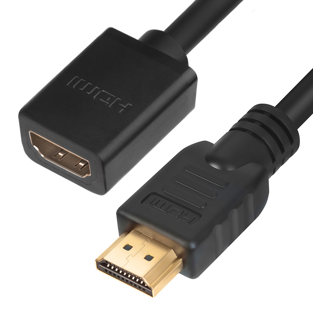 GCR Кабель удлинитель HDMI цифровой 1m v1.4, Ethernet 100 Мбит High speed GCR-HMFR6-AAS-1m 19M[штекер]/19F[гнездо], 30/30 AWG, позолоченный разъем, экран, пластиковый пакет, черный