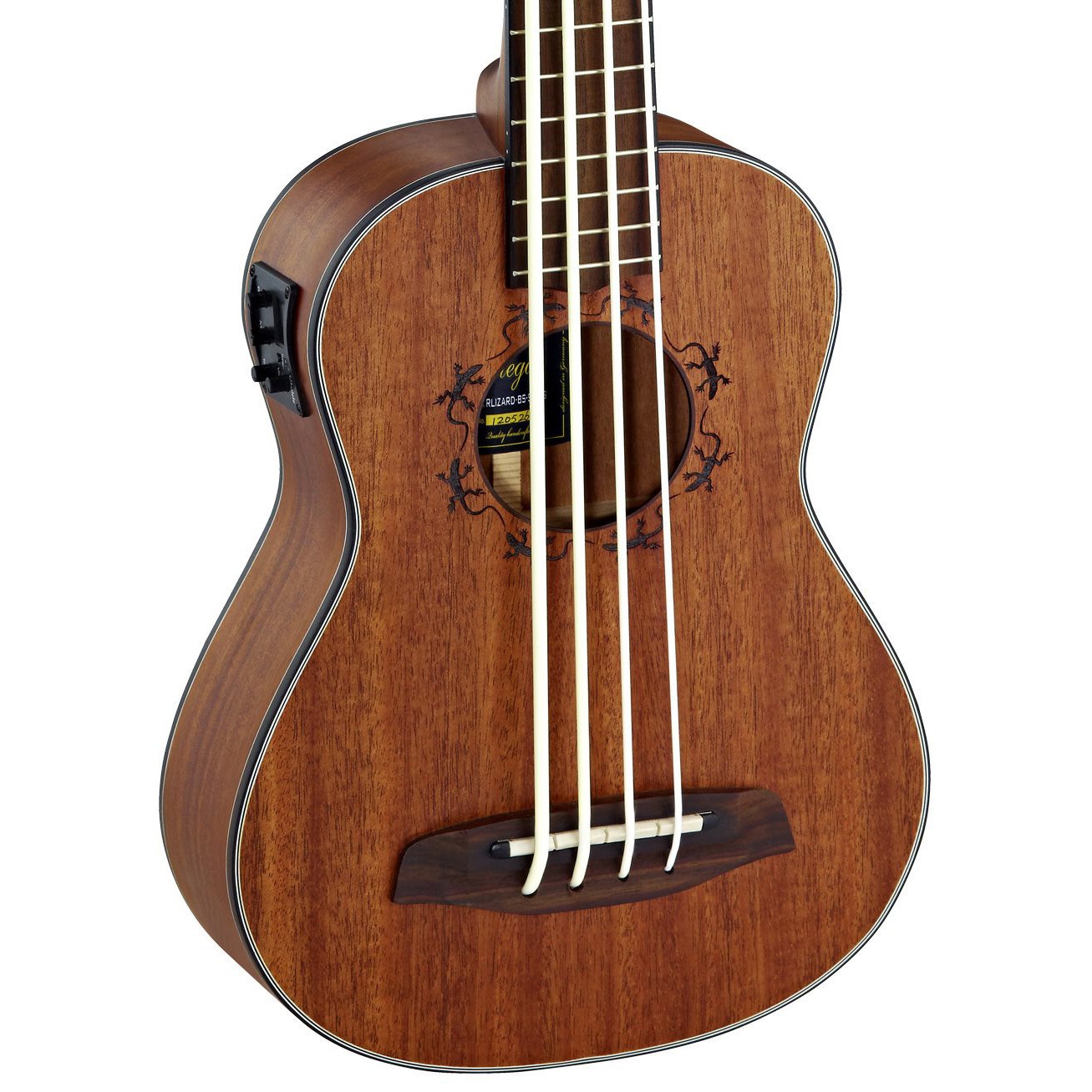 Укулеле Ortega LIZZY-BS-GB Lizard Series - укулеле бас со звукоснимателем, ладовами и чехлом в комплекте от немецкого бренда укулеле Ortega. Корпус укулеле сделан из красного дерева. Эта модель подходит для начинающих и профессионалов.