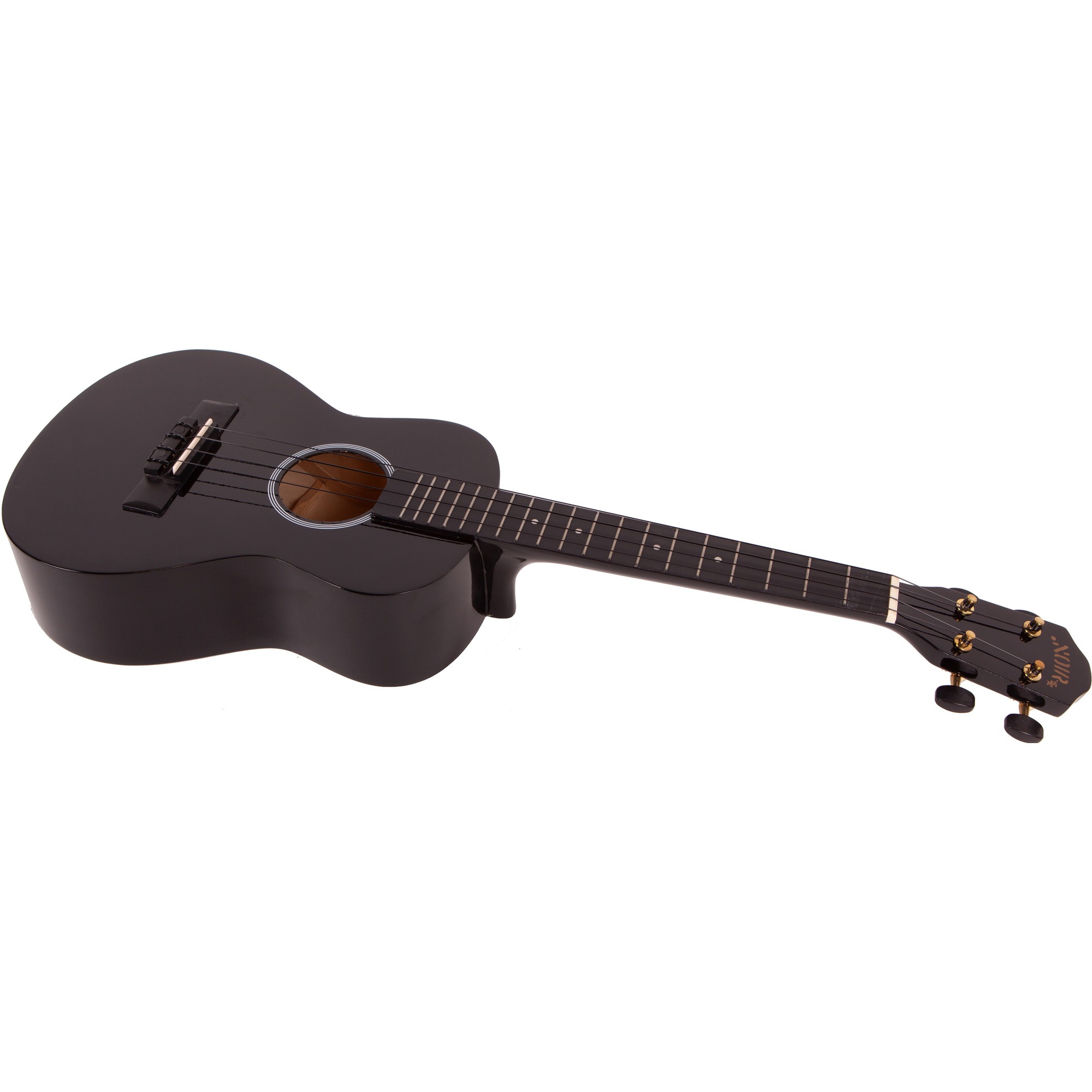 Baton ROUGE NOIR BY BR NU1T – это укулеле тенор, входящее в серию NOIR у производителя Baton ROUGE. Данная серия предназначена для новичков, которые только пытаются играть и не нуждаются в инструменте высокого класса с самого начала. Корпус простой гитары укулеле тенор Baton ROUGE NOIR BY BR NU1T выполнен из клёна: это недорогой и качественный материал для гитар, и из него же сделан гриф, и даже накладка на гриф выполнена из цветного клёна. Данный материал делает тембр инструмента ярким и насыщенным. Колковый механизм – открытый в гитарном стиле с черными лепестками. Мензура укулеле тенор составляет 432 мм. Верхний порожек – традиционный 35 мм.