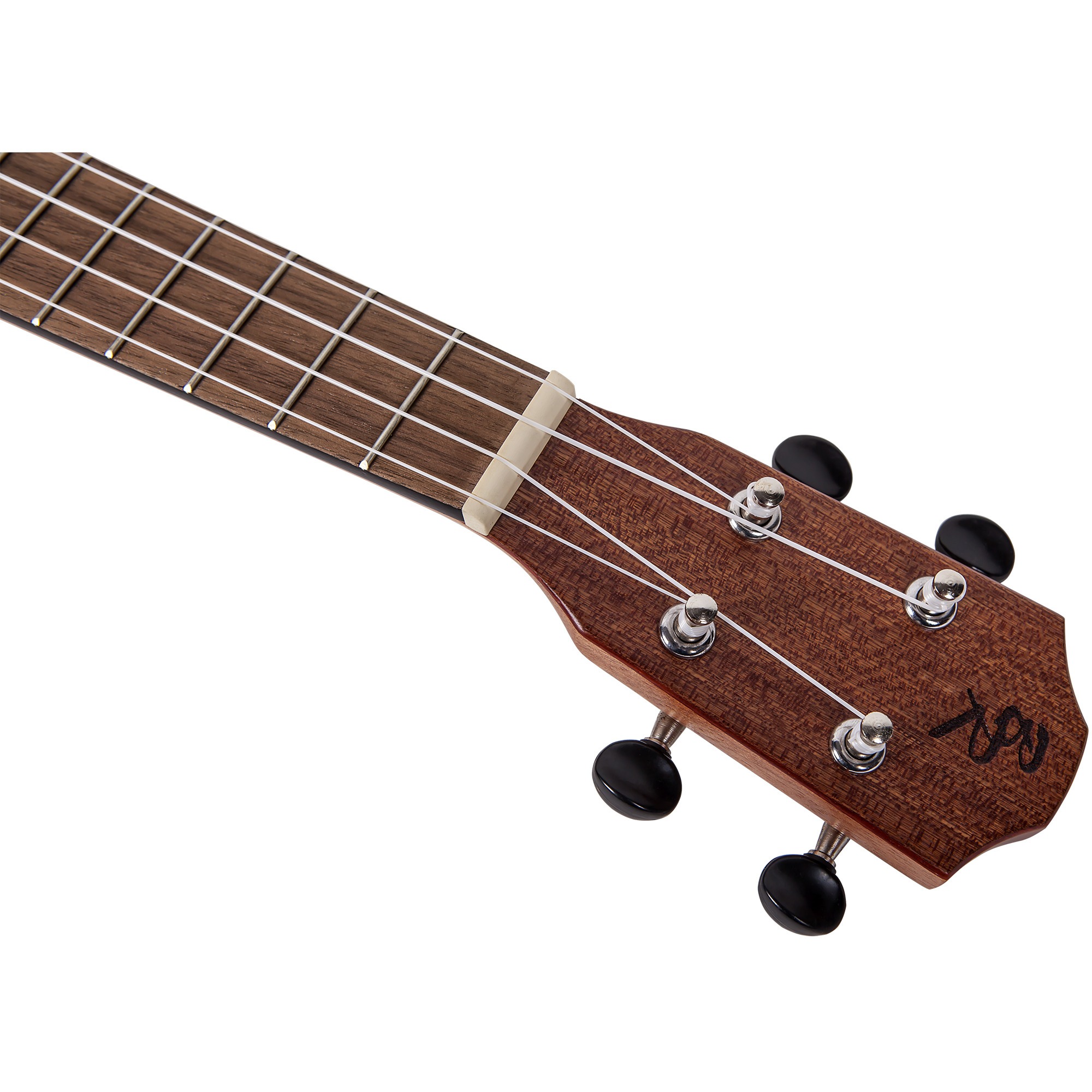 BATON ROUGE UR21-С выполнена в корпусе из красного дерева с грифом из нато. Накладка на гриф и бридж сделаны из ореха. Порожек 35 мм и точки на бридже сделаны из материала Nubone, являющегося разновидностью материала TUSQ. Лады гитары дополняются четырьмя струнами Aquila Nylgut. Колки также сделаны открытыми хромированными с черными точками.