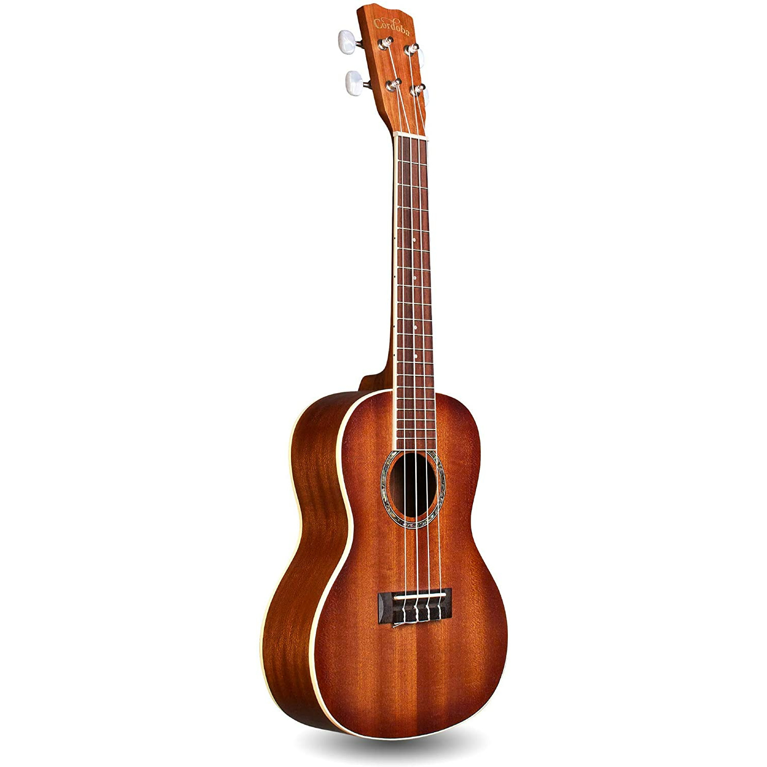 Дека инструмента, обечайка и нижняя дека сделаны из махагони, бридж изготовлен из палисандра. Гриф сделан из махагони с накладкой из палисандра. Количество ладов грифа - 19. Мензура укулеле составляет 14 3/4" (375 мм), цвет - санберст. Инструмент под правую руку. Электроника - Cordoba Ukulele Pickup с настройкой громкости (Volume). Установлен комплект струн Aquila New Nylgut Tenor 10U.