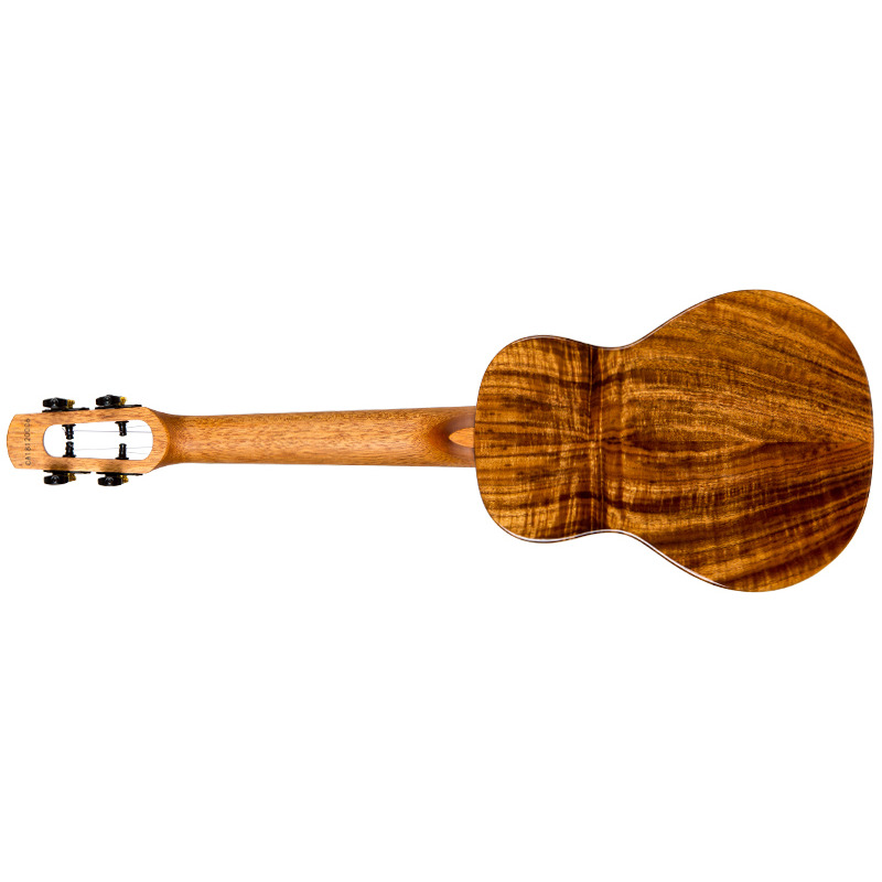 Верхняя дека укулеле выполнена из массива ели, нижняя дека и обечайка - из массива акации. Ель делает тембр ярким, а акация с ее теплой серединой, создает превосходный баланс - общее звучание получается звонким, но при этом теплым и округлым. Кроме того цельная древесина обеспечивает улучшенный резонанс и дополнительный объем. Гриф инструмента сделан из африканского махагони, а накладка - из Tech Ebony (композитной древесины, которая по своим акустическим свойствам не уступает палисандру, но при этом позволяет сохранить его на нашей планете). Верхний и нижний порожки изготовлены из натуральной кости. Этот материал продлевает сутейн и обеспечивает безупречную интонацию по всему грифу. Кроме того, в этой модели использован нетипичный для укулеле бридж с установкой струн сквозь корпус. Благодаря такому решению сустейн инструмента стал практически бесконечным.