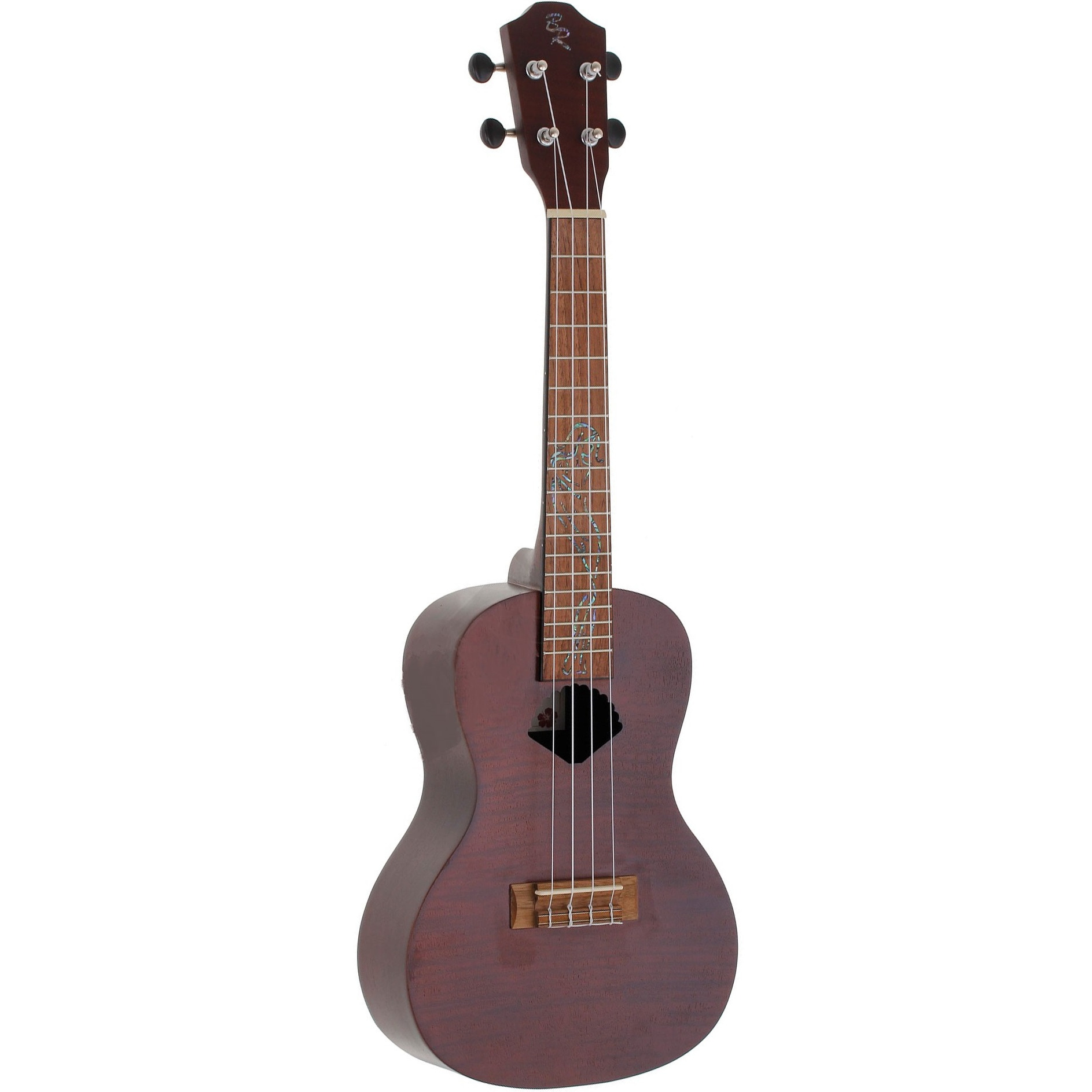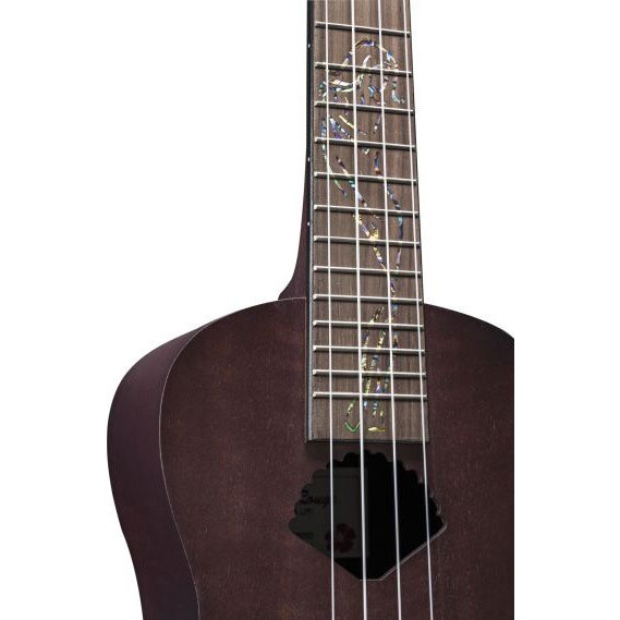 В укулеле BATON ROUGE V4-C venus используются 4 струны Aquila Nylgut. Отделка выполнена в тёмных тонах натурального дерева со звуковым отверстием в форме ракушки, у инструмента матовая поверхность с открытыми порами. Струны прикреплены к открытым хромированным колкам в гитарном стиле, с черными бутонами.