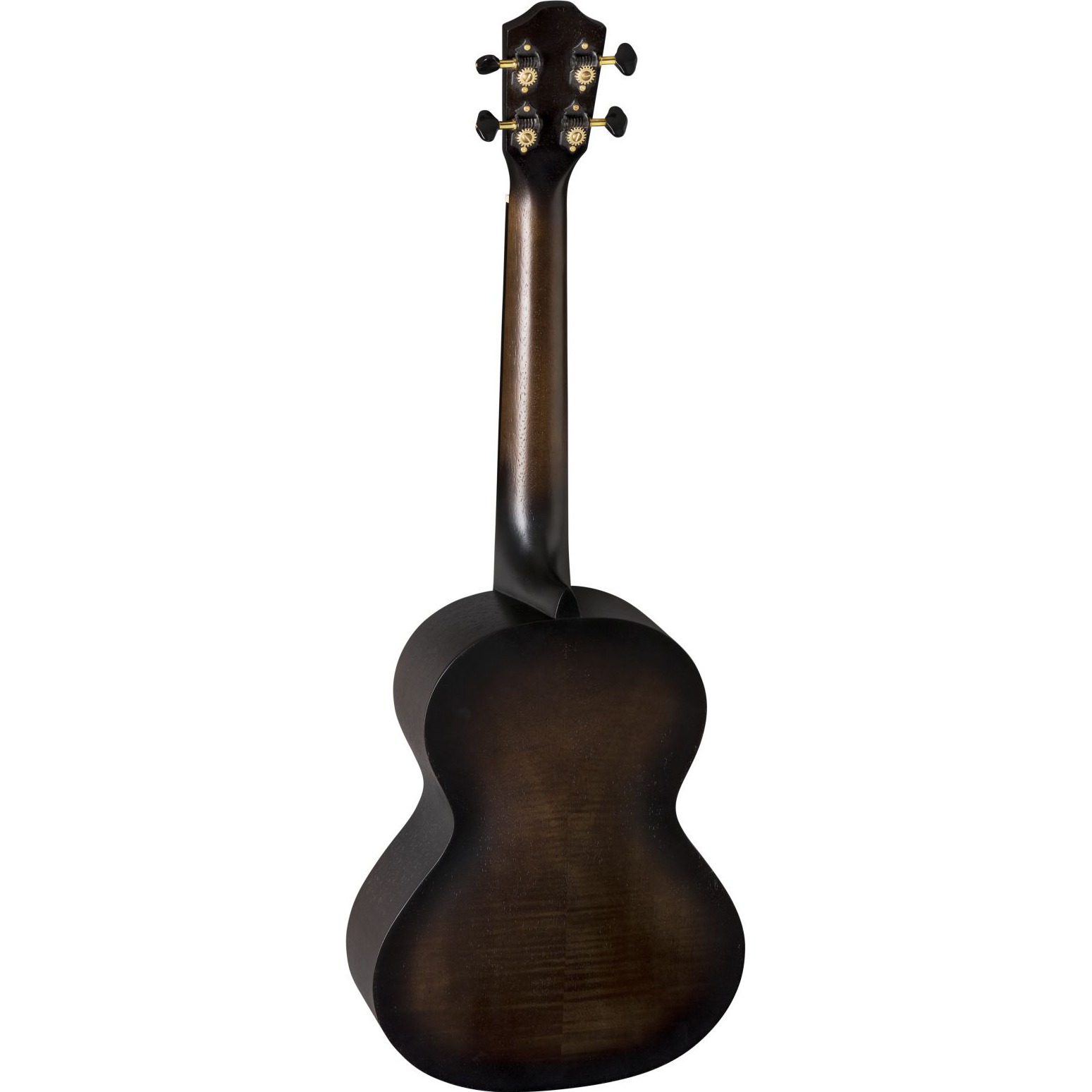 В укулеле BATON ROUGE VX1/CX-CB используются 4 струны Aquila Nylgut. Отделка выполнена в цвете charcoal burst, у инструмента матовая поверхность с открытыми порами. Струны прикреплены к открытым черным колкам в гитарном стиле, с черными бутонами.