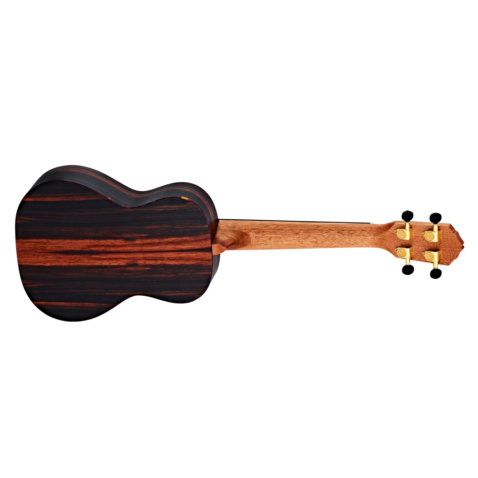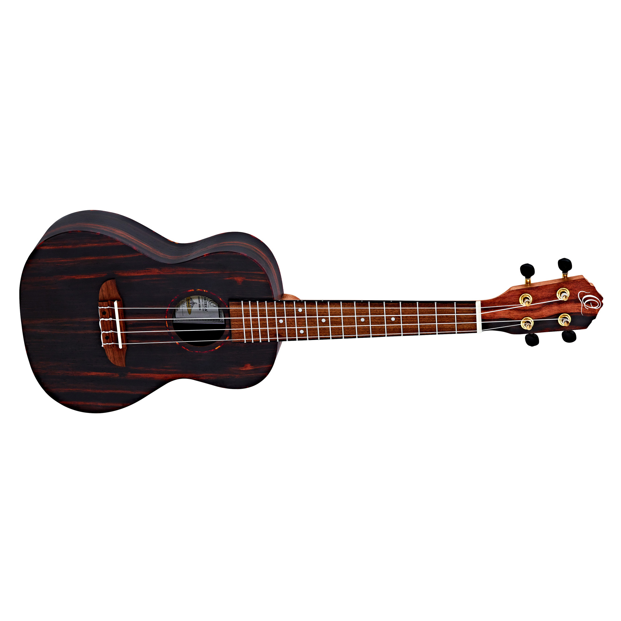 Ortega RUEB-CC Ebony Series – концертное укулеле, весь корпус которого выполнен из отобранного черного дерева. Отделка натуральная, с открытыми порами. Корпус имеет окантовку из ABS-пластика под черепаховый панцирь. Гриф идет из красного дерева с матовой отделкой, накладка и бридж сделаны из древесины грецкого ореха. Модель бриджа – Ortega Uke. У инструмента 18 ладов, длина мензуры – 380 мм, а верхний порожек в ширину 38 мм. Установлены литые колки с позолоченными деталями. Также стоит комплект концертных струн Ortega UWNY-4-CC, разработанный в сотрудничестве с Aquila (Италия). Использован новый материал NYLGUT. Толщина струн: 027/.038 /.032/.024. К RUEB-CC Ebony Series прилагается чехол для транспортировки.