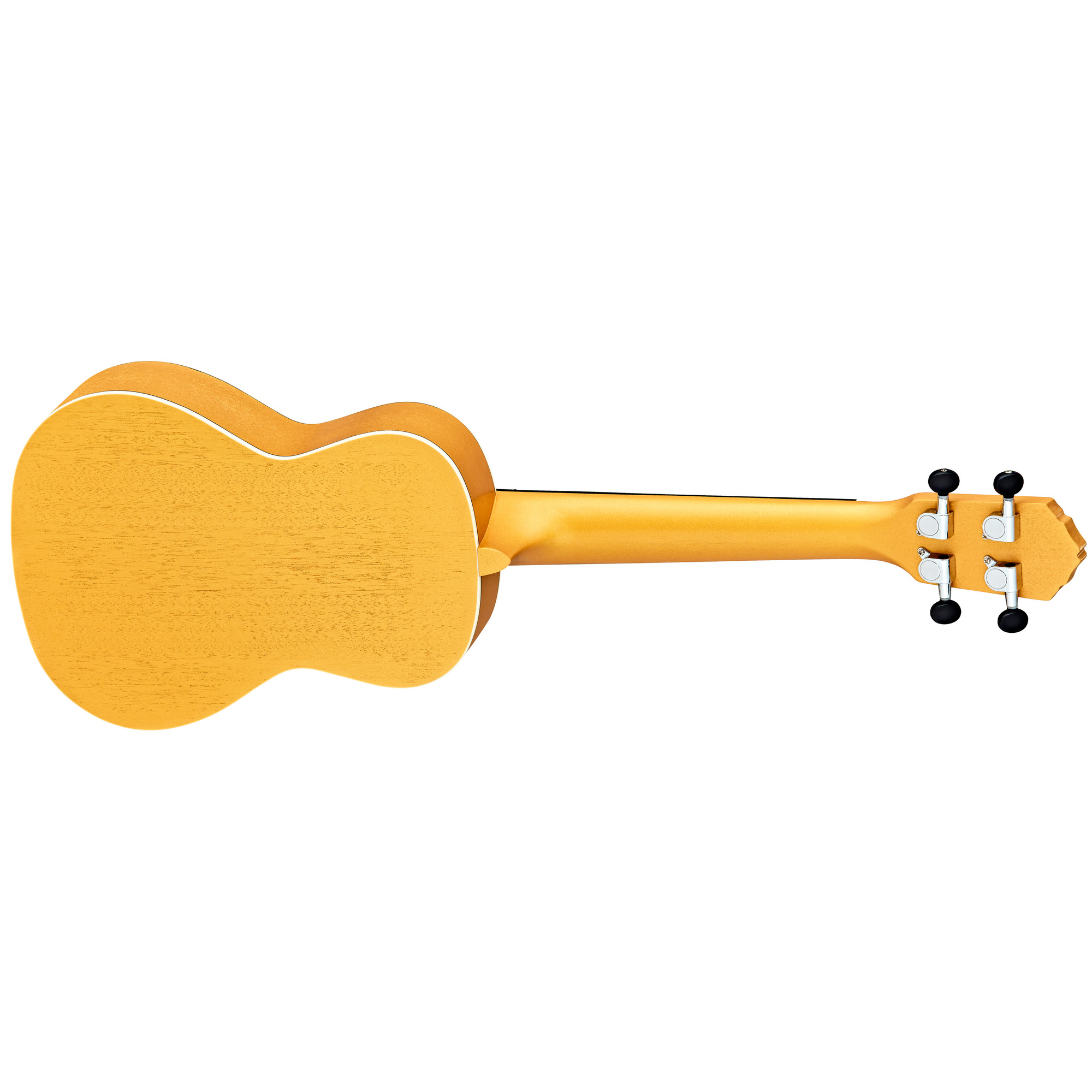 Ortega RUGOLD представляет собой четырехструнный укулеле - компактную гавайскую гитару из серии Ortega Earth с концертным корпусом и мягким, сбалансированным звучанием. Благодаря небольшим габаритам и уникальному звучанию, данный тип инструмента получил достаточно большую популярность среди множества музыкантов. Музыкальный инструмент обладает удобной конструкцией и невероятно доступной ценой. Корпус укулеле полностью изготовлен из габонского красного дерева Okume (верхняя дека, задняя дека и обечайки). Для изготовления грифа производитель использовал махагони (еще одна разновидность красного дерева). Обратите внимание на струнодержатель и накладку из орехового дерева. Подобное сочетание пород древесины обеспечивает теплое и сбалансированное звучание, которое прекрасно подходит для домашних занятий и сценических выступлений. На накладке грифа расположились 18 стандартных ладов со специальными маркерами, выполненными в виде белых точек. Они позволяют быстро сориентироваться на грифе.