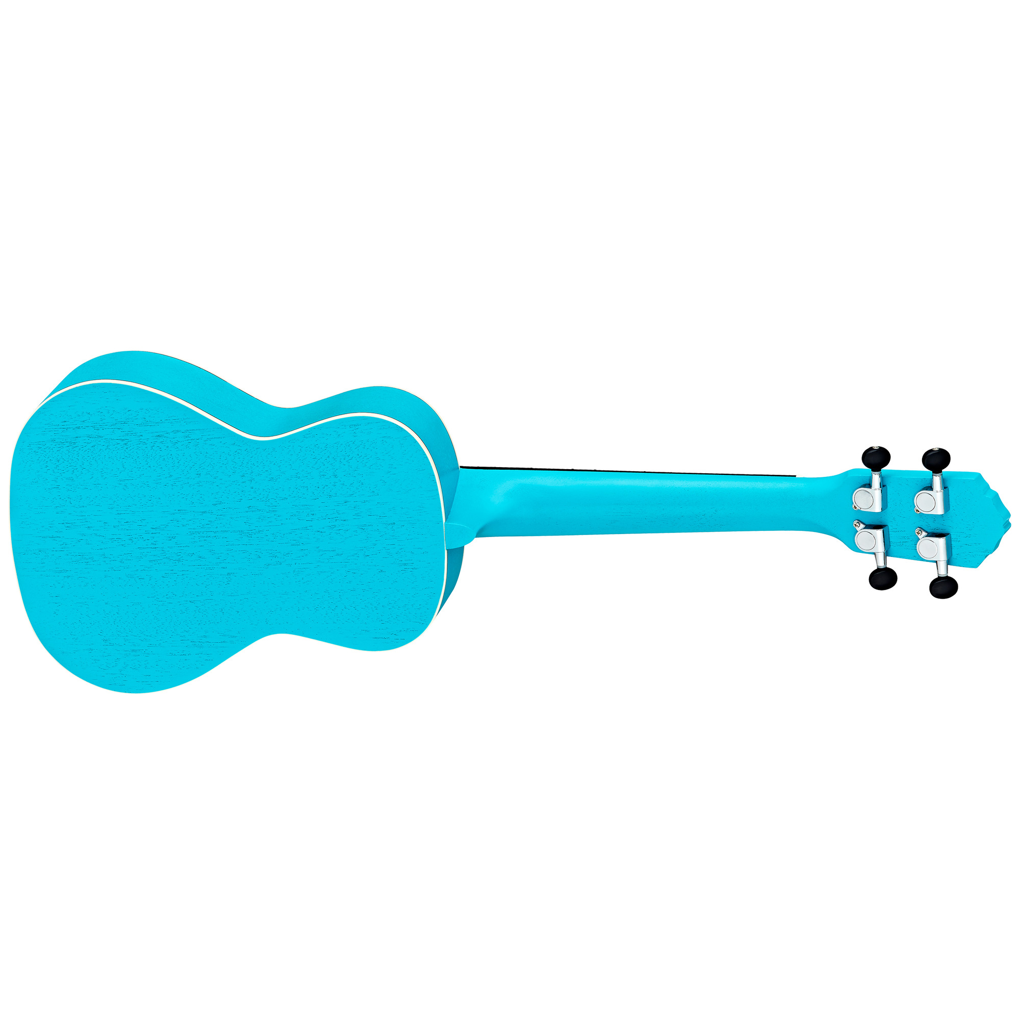 За удобство настройки и стабильность строя отвечают стандартные хромированные колки закрытого типа с пластиковыми черными ручками. Стоит отметить наличие красивой окантовки корпуса из пластика белого цвета. Инструмент выполнен в насыщенном синем цвете с матовой внешней отделкой. Укулеле Ortega RULAGOON станет прекрасным вариантом для подарка другу или родственнику. Это прекрасный музыкальный инструмент для выступлений, путешествий или походов на природу.