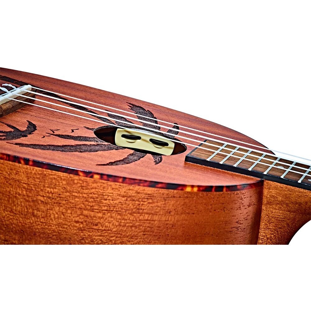 RUPA5MM-E - укулеле концерт с корпусом в форме ананаса от компании Ortega. Верхняя дека, нижняя дека и обечайки инструмента сделаны из махагони. Корпус имеет окантовку из прочного пластика ABS и матовое покрытие. Гриф выполнен из махагони и имеет накладку из ореха с 18 ладами. Колки укулеле - литые хромовые. Струны - Ortega UWNY-4-CC. Под нижним порожком укулеле установлен звукосниматель, а в резонаторном отверстии - электроника.