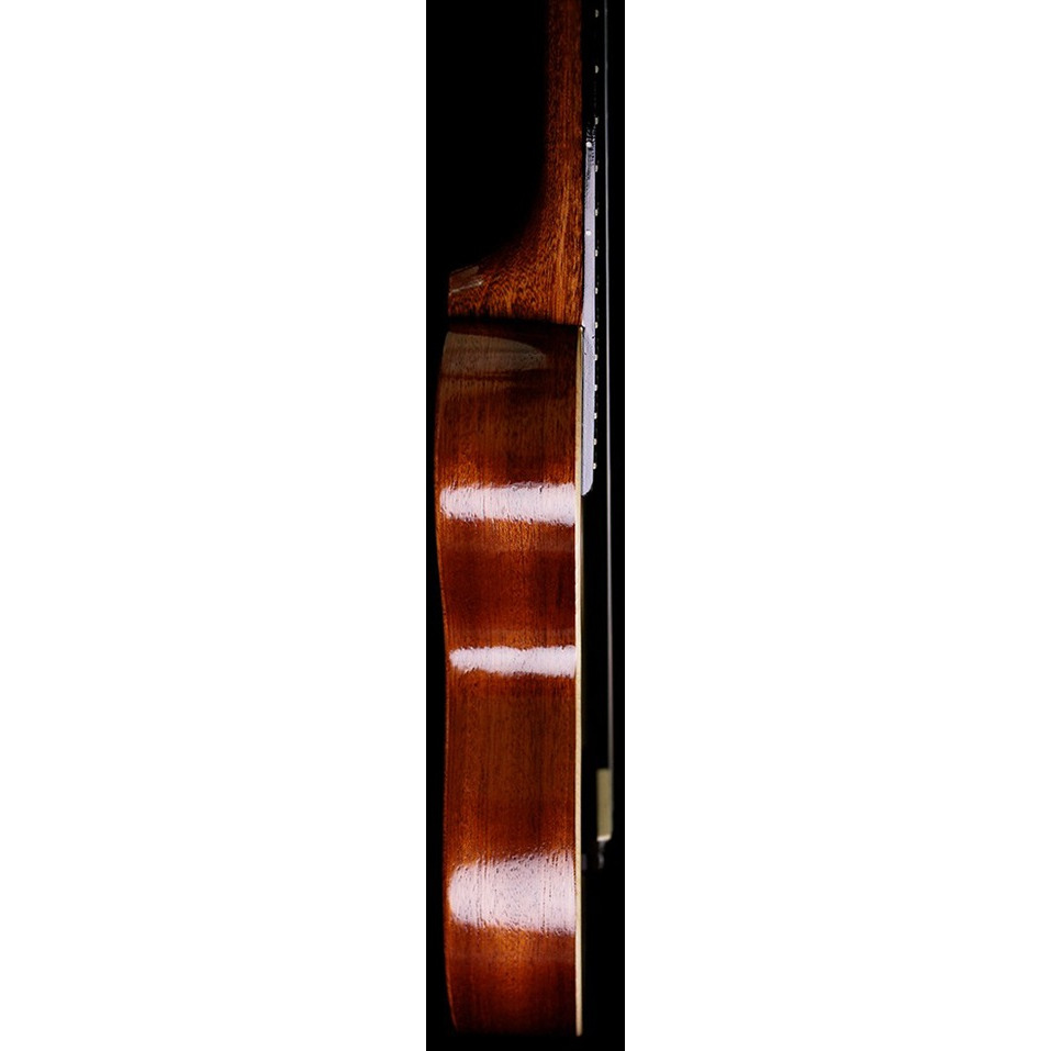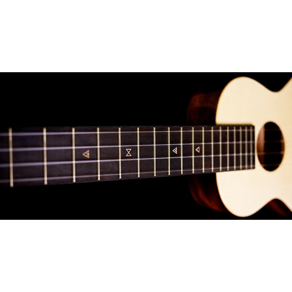 Верхняя дека укулеле выполнена из массива ели, нижняя дека и обечайка изготовлены из массива красного дерева (махагони). Цельная древесина обеспечивает улучшенный резонанс и дополнительный объем, а топ из ели делает громкое и чистое звучание с ярким тембром. Гриф инструмента сделан из маранго и выполнен в увеличенном размере (19 ладов), а накладка на гриф и бридж – из эбони. Голова грифа так же изготовлена из эбони с инкрустацией из натуральной древесины в виде логотипа компании. На накладке грифа предусмотрены маркеры в форме разных геометрических фигур, которые сделаны из клена. Верхний и нижний порожки изготовлены из материала TUSQ, который по своих характеристикам аналогичен натуральной слоновой кости. Порожки из этого материала продлевают сутейн и обеспечивают безупречную интонацию по всему грифу.