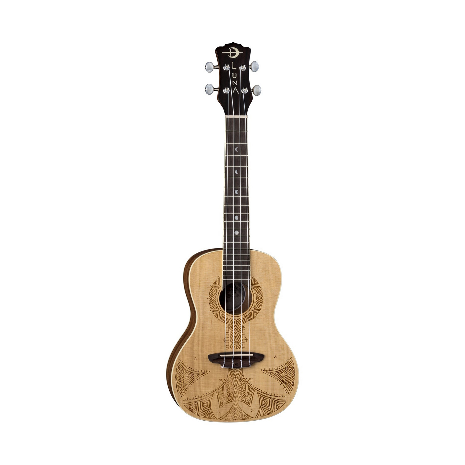 Концертное укулеле Luna UKE SAH C – потрясающий пример превосходного дизайна и качественного мастерства. Этот доступный инструмент создан из тщательно отобранной древесины, включая ель, махагони и орех. Это великолепное сочетание предоставляет широкий тональный диапазон, характеризующийся теплым, богатым среднечастотным тоном, в комбинации с яркой атакой и гладким энергичным исполнением. Благодаря концертной форме корпуса, укулеле дает комфортные игровые ощущения и более громкое звучание по сравнению с сопрано. Верхняя дека из массива ели обеспечивает яркой атакой, отличным динамичным диапазоном и четкой артикуляцией. А в совокупности с махагоновым корпусом звук сфокусированный с чистым звучанием глубоких низких частот, теплых средних и певучих высоких. Для максимального игрового комфорта махагоновый гриф сделан с «С» профилем и оборудован накладкой из ореха, которая включает маркеры в виде разных фаз луны и 20 ладов. А лазерная гравировка симметричного дизайна, выполненная из геометрических форм, придает уникальности внешнему виду.