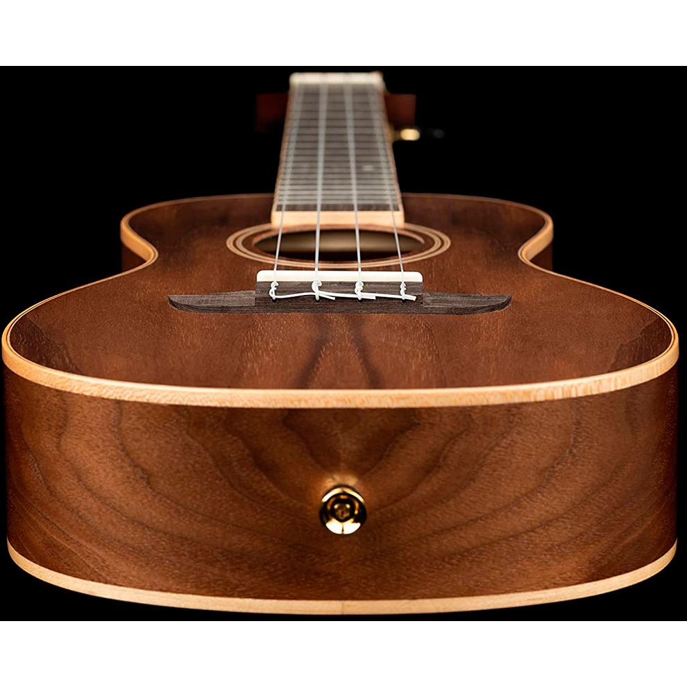 Укулеле такого типа звучит очень сбалансировано и обладает более объемным тембром по сравнению с типом "сопрано". Корпус RUWN изготовлен из орехового дерева, которое обладает выразительной текстурой и позволяет добиться плотного, сфокусированного звука. Отделка корпуса Open Pore позволяет древесине лучше резонировать. Гриф здесь выполнен из окоуме, а его накладка на 18 ладов сделана из композитной древесины Tecwood. Бридж у данной модели также из композитной древесины. Литые колки золотистого цвета с черными ручками не только дополняют стильный облик инструмента, но и гарантируют точную, удобную настройку. Реверсивное перо грифа чрезвычайно стильно смотрится и вносит свой вклад в общий современный дизайн укулеле.