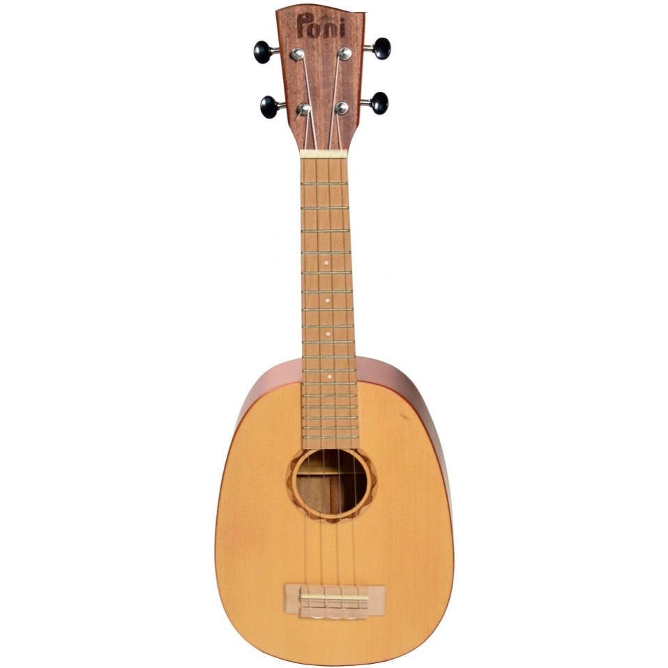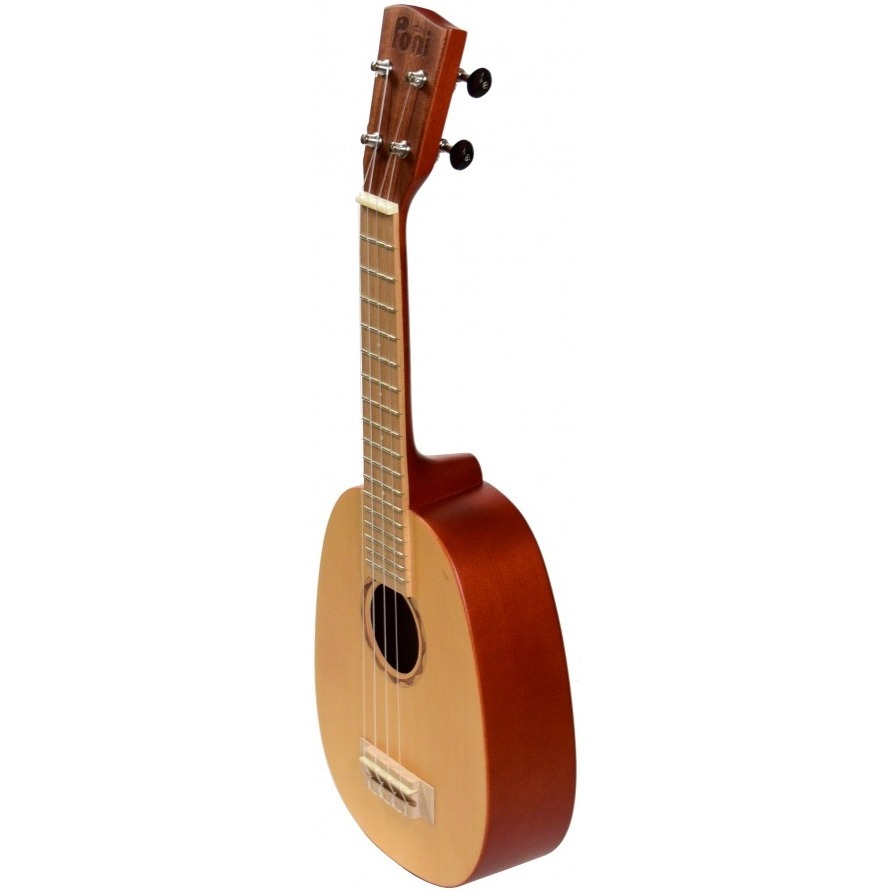 Poni USVL - это укулеле сопрано винтаж с нейлоновыми струнами. Верхняя дека инструмента изготовлена массива ели, задняя дека и обечайки - из вяза и клена. Гриф приклеен и также изготовлен из комбинированных пород дерева - вяза, клена и палисандра. Внешняя отделка укулеле является лакированной и матовой.