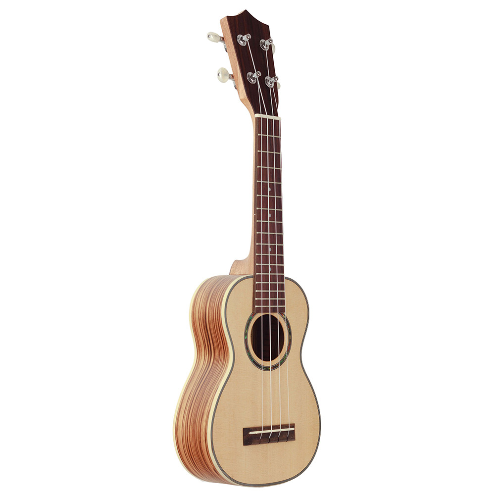 Укулеле Prima M320S имеет классическую форму корпуса, и размер soprano. Задняя дека и обечайки укулеле сделаны из дерева зебрано (zebrawood). Это дерево дает очень хороший сустейн, яркие и открытые верхние частоты, ярко выраженную середину и плотный, но немного приглушенный бас. А топ из ели, придает звучанию теплый тембр.