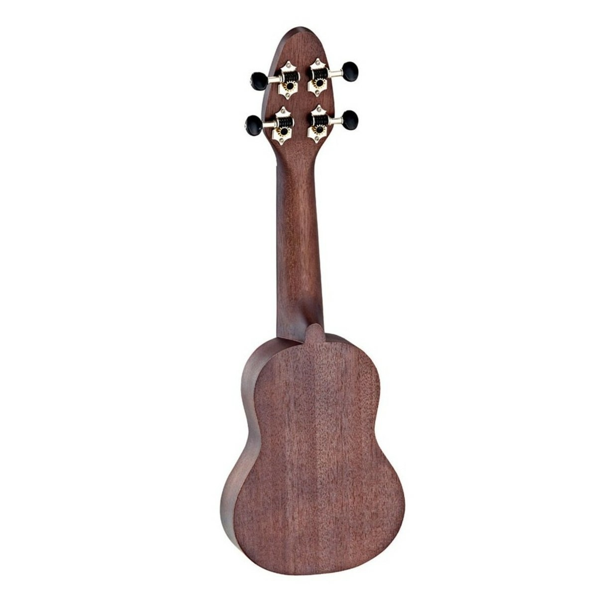 Ortega K1-CO Keiki представляет собой не просто детскую гитару, а уникальное сочетание яркого дизайна и высококачественных материалов. укулеле сопранино. Корпус гитары окрашен в коричневый цвет, а верхняя дека украшена лазерной гравировкой в форме черепахи. Слово Keiki в названии модели дословно переводится как «младенец», так что такая миниатюрная гитара с 4 струнами и 12 ладами наверняка станет идеальным первым инструментом любого ребенка. Так как гитара создана в размере сопранино (то есть меньше сопрано), производителем рекомендуется использовать вариант настройки A D F# B (стандарт) или же D G E A. Это позволит правильно скорректировать натяжение струн для мягкого, приятного и нежного звучания. Уклулеле K1-ORG Keiki выполнена из древесины окоуме, а длина ее мензуры равняется 284 мм. Открытые колки обладают хромированным напылением.