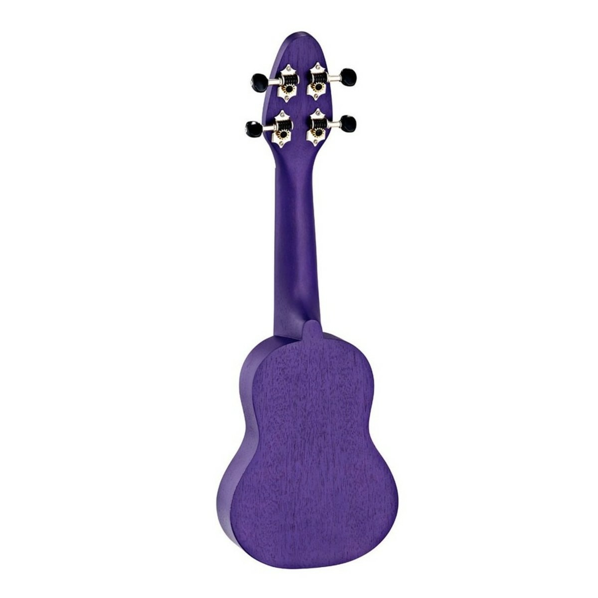 Ortega K1-PUR Keiki представляет собой не просто детскую гитару, а уникальное сочетание яркого дизайна и высококачественных материалов. укулеле сопранино. Корпус гитары окрашен в фиолетовый цвет, а верхняя дека украшена лазерной гравировкой в форме черепахи. Слово Keiki в названии модели дословно переводится как «младенец», так что такая миниатюрная гитара с 4 струнами и 12 ладами наверняка станет идеальным первым инструментом любого ребенка. Так как гитара создана в размере сопранино (то есть меньше сопрано), производителем рекомендуется использовать вариант настройки A D F# B (стандарт) или же D G E A. Это позволит правильно скорректировать натяжение струн для мягкого, приятного и нежного звучания. Уклулеле K1-ORG Keiki выполнена из древесины окоуме, а длина ее мензуры равняется 284 мм. Открытые колки обладают хромированным напылением.