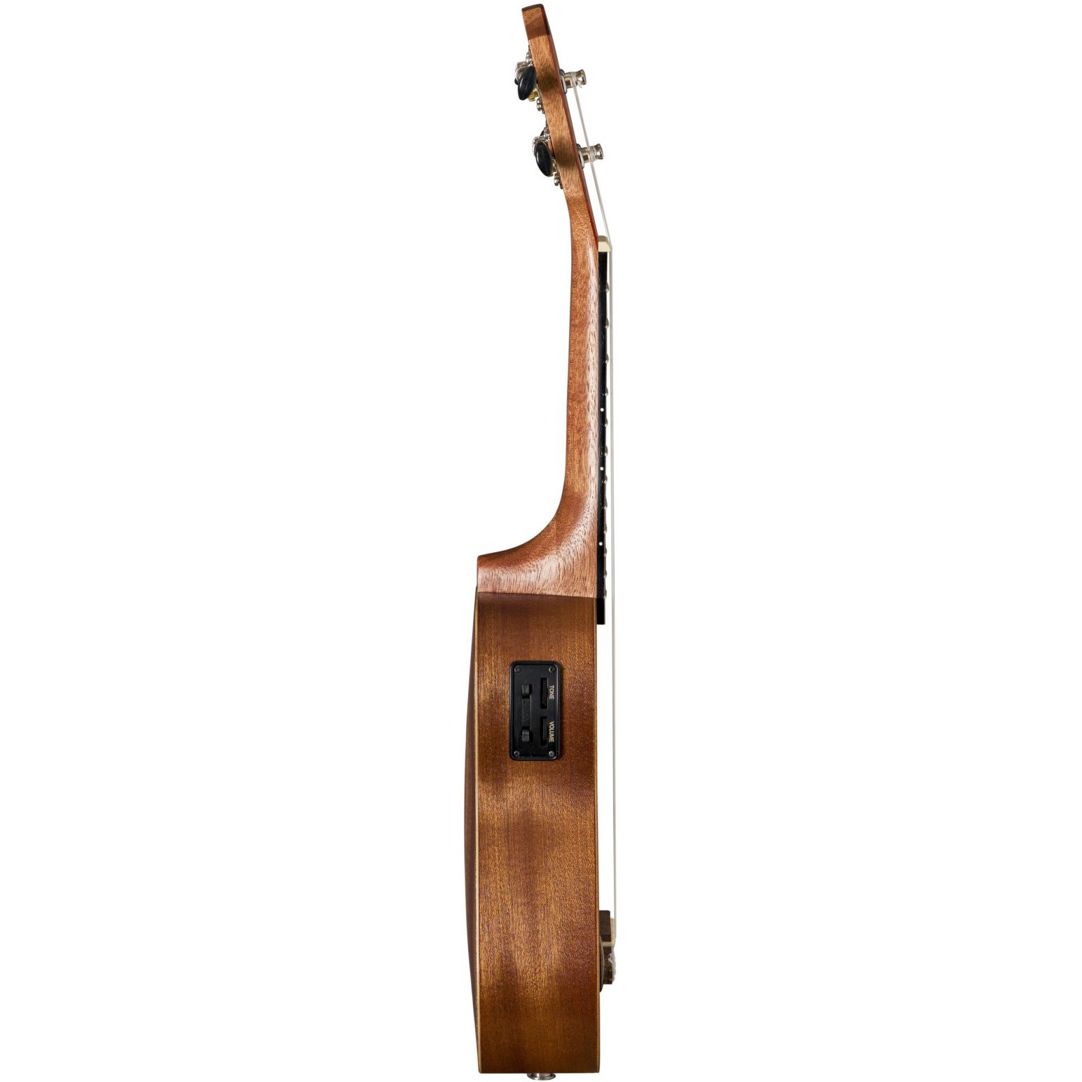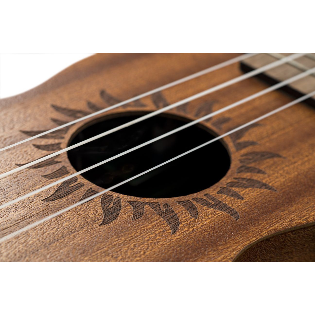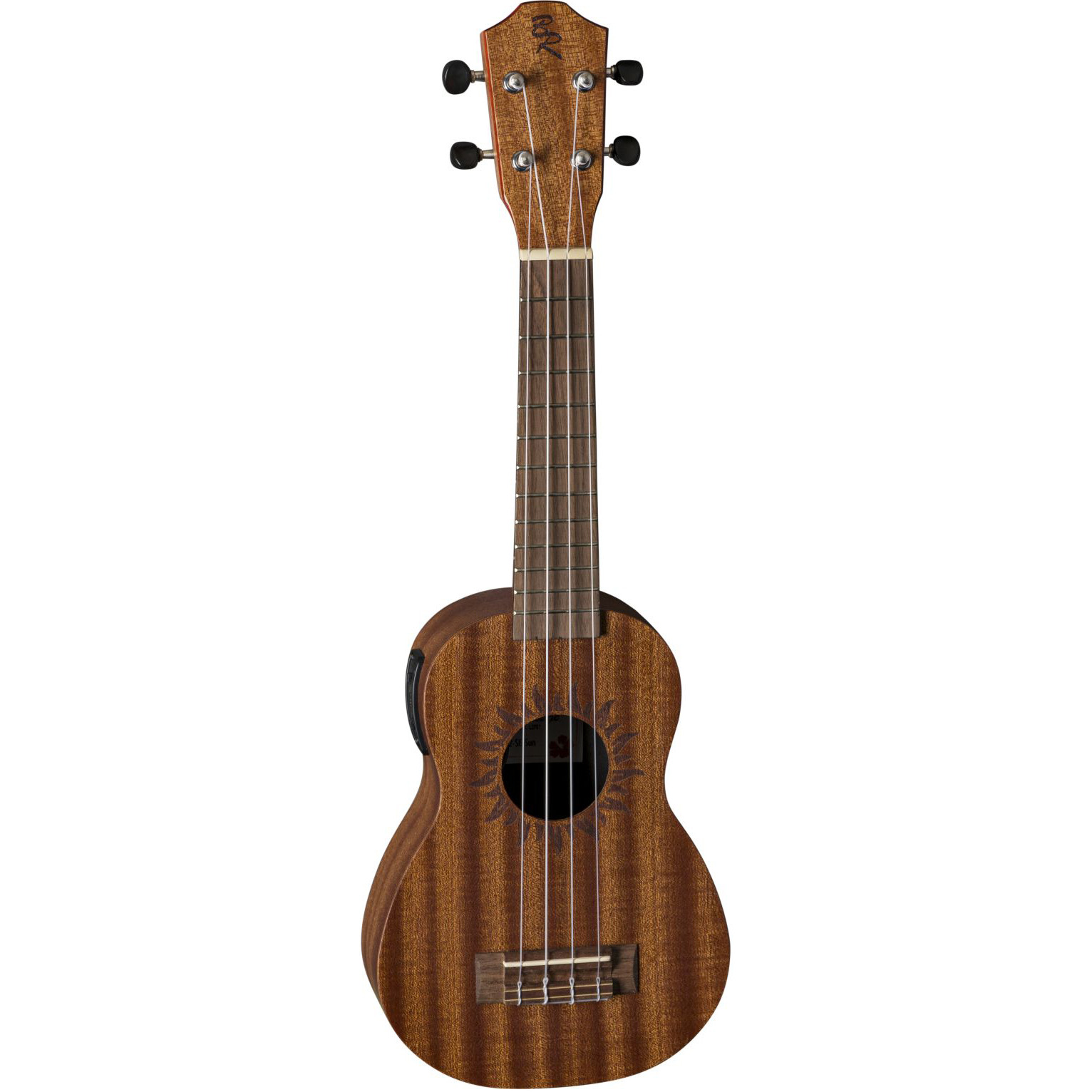 BATON ROUGE V2-SE sun – это миниатюрная гитара-сопрано укулеле с катавеем, чей корпус выполнен из популярного красного дерева. У гитары традиционные 4 струны, 12 ладов и гриф из нато, а овальный вырез в центре (розетка) дополнен лазерной гравировкой солнца по периметру. Накладка на гриф и бридж выполнены и ореха. Порожек и маркеры бриджа выполнены из материала Nubone, который является разновидностью материала TUSQ с похожими тональными характеристиками, но при этом он не гасит вибрацию струн, передавая оптимальные частоты и расширяя гармоники.