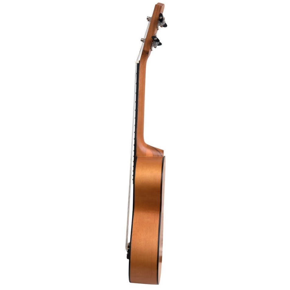US-Doff - укулеле размера "сопрано" от компании Doff. Верхняя дека инструмента сделана из массива ели, нижняя дека и обечайки - из массива бука и карагача. Покрытие корпуса - матовое. Гриф выполнен из массива бука и карагача и имеет накладку из мореного клена с 17 нейзильберовыми ладами.