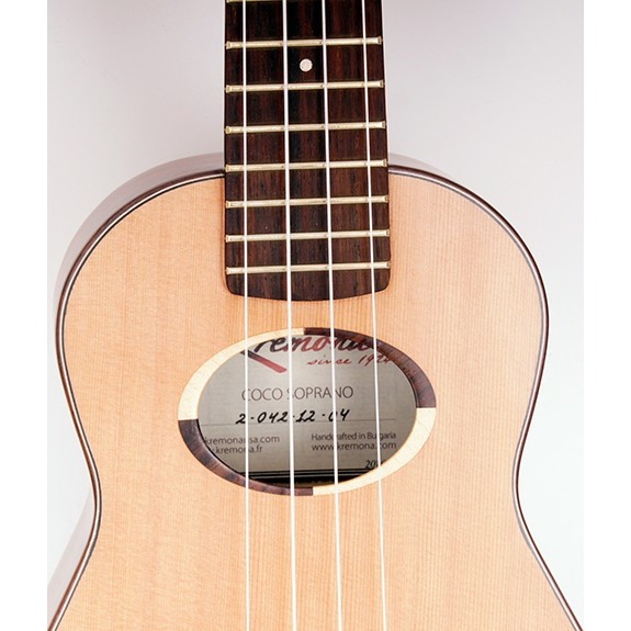 Coco-S - укулеле сопрано от компании Kremona. Верхняя дека инструмента сделана из массива красного кедра, а нижняя дека и обечайки - из массива индийского палисандра. Гриф выполнен из африканского махагони, а накладка на гриф - из индийского палисандра (15 ладов). Корпус укулеле покрыт глянцевым полиуретановым лаком. Крепление грифа "ласточкин хвост" позволяет более полно передать вибрацию струн на корпус. Колки укулеле - позолоченные. Костяные порожки гарантируют правильную интонацию всех нот.