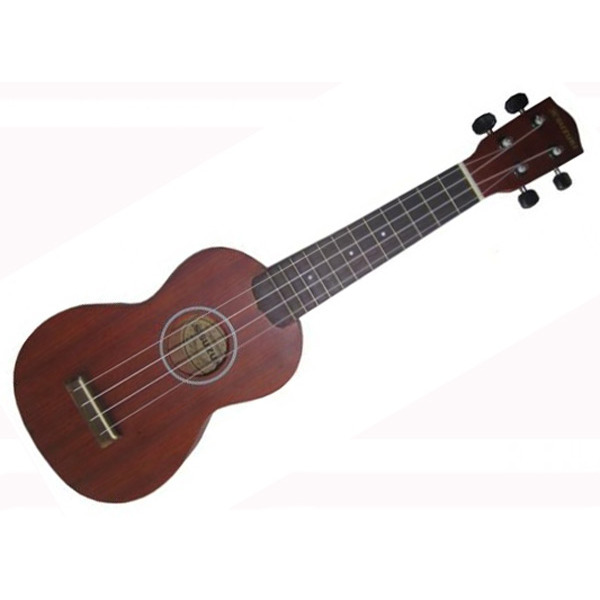 Suzuki SUK-1 Укулеле, серия Сопрано, мензура 13,625` (346 мм), корпус и верхняя дека из липы, гриф из катальпы, накладка грифа из палисандра, 12 ладов из посеребренной меди, хромированная фурнитура с сатиновым покрытием, ремень, медиатор, духовой камертон и нейлоновый чехол в комплекте.