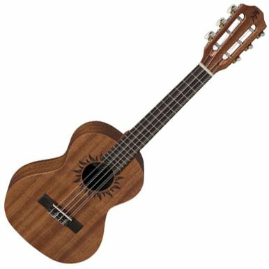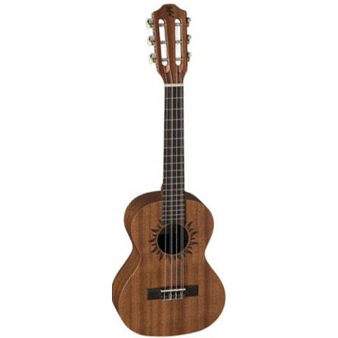 BATON ROUGE V2-T6 sun является необычной шестиструнной гитарой-укулеле тенор, в которой добавлены две струны в дополнение к классическим четырем: нижняя струна A и верхняя струна C. В остальном же эта гитара является вполне классическим инструментом тенор- диапазона, чей корпус выполнен из красного дерева, а гриф – из нато. Накладка на гриф и сам бридж тоже не преподносят сюрпризов, будучи выполненными из ореха. Расширенный тональный диапазон приводит к 18 ладам и длинной мензуре в 430 мм. Ширина порожка составляет 37 мм.