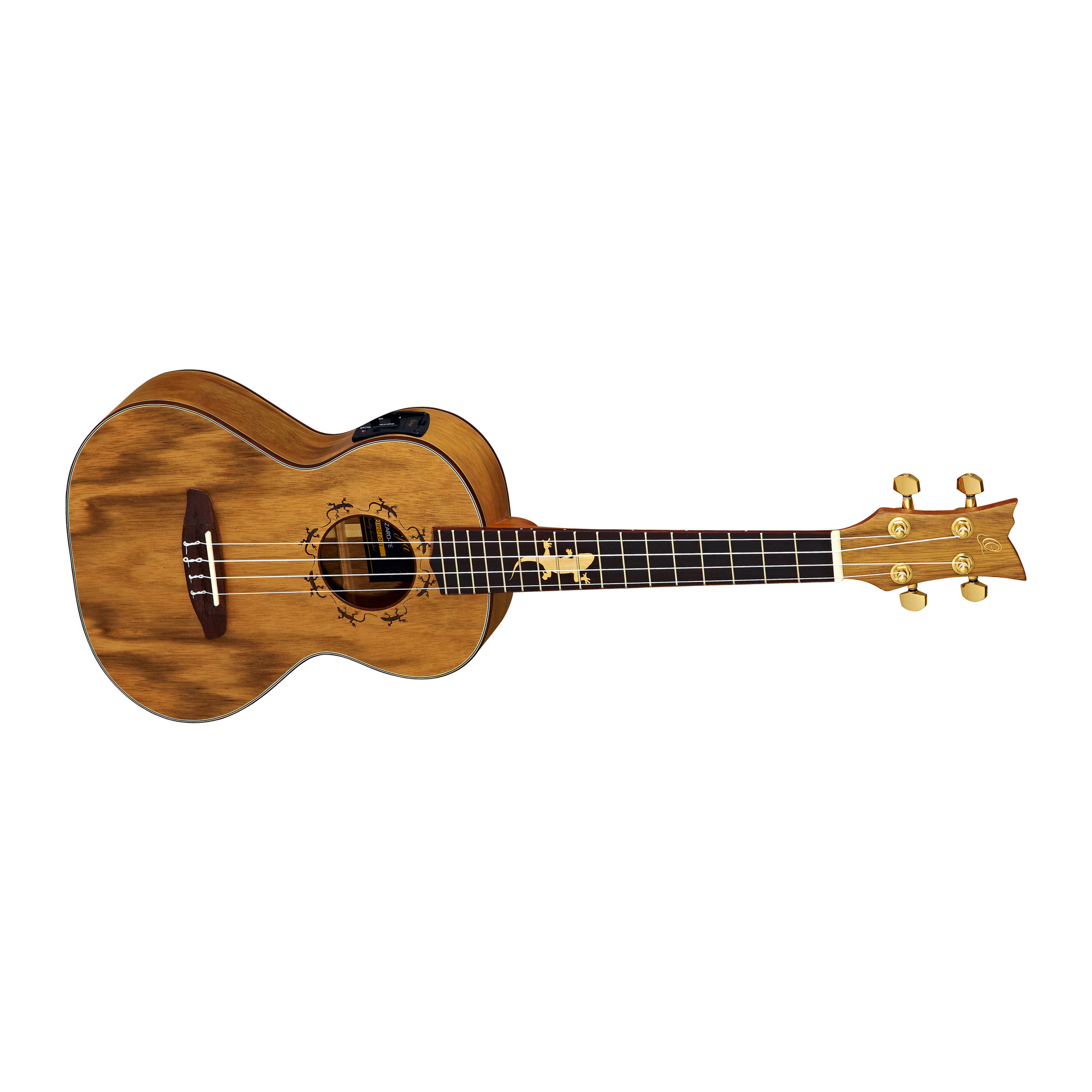 Укулеле Ortega LIZARD-TE-GB Lizard Series в корпусе размера концерт от немецкого бренда укулеле Ortega. Корпус укулеле сделан из дерева Палдао. На верхней деке вокруг резонаторного отверстия выгравирован рисунок "ящерицы".Модель Ortega LIZARD-TE-GB Lizard Series концертная подходит для любителей и профессионалов. Благодаря встроенному звукоснимателю вы можете подключать укулеле к акустической системе или для записи. Помимо этого в укулеле встроен тюнер c помощью которого очень легко настроить инструмент. Гриф выполнен из ореха. Порожек – из натуральной кости. На грифе расположено 18 ладов. Белая двойная окантовка по корпусу. Модель представлена в натуральном цвете с позолоченной фурнитурой. На накладке грифа изображена золотая ящерица. Когда придет время расслабиться, поехать в путешествие с друзьями, ваше укулеле Ortega LIZARD-TE-GB Lizard Series всегда будет готово для исполнения аккордов любимых песен. В комплекте с этой укулеле идет удобный фирменный чехол.