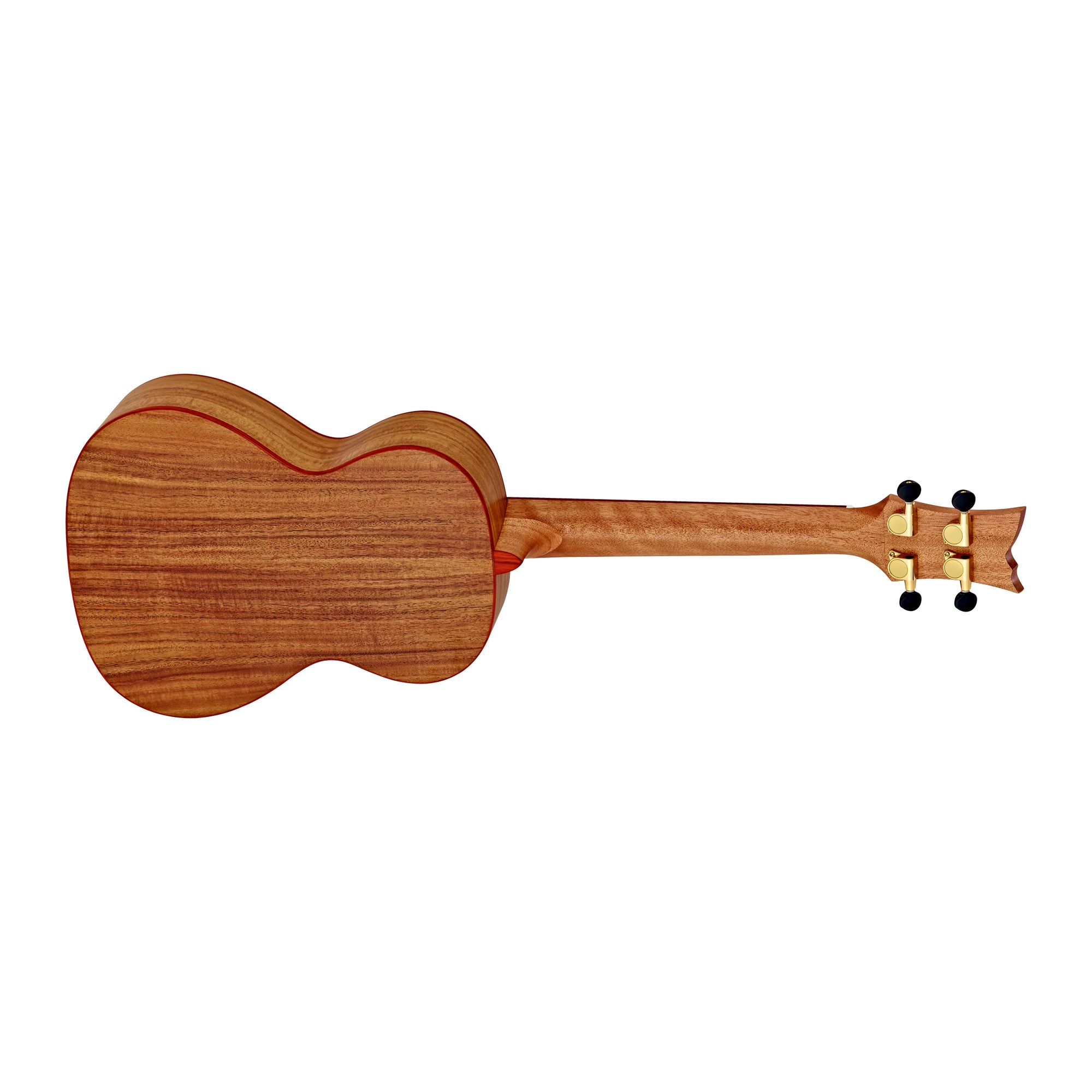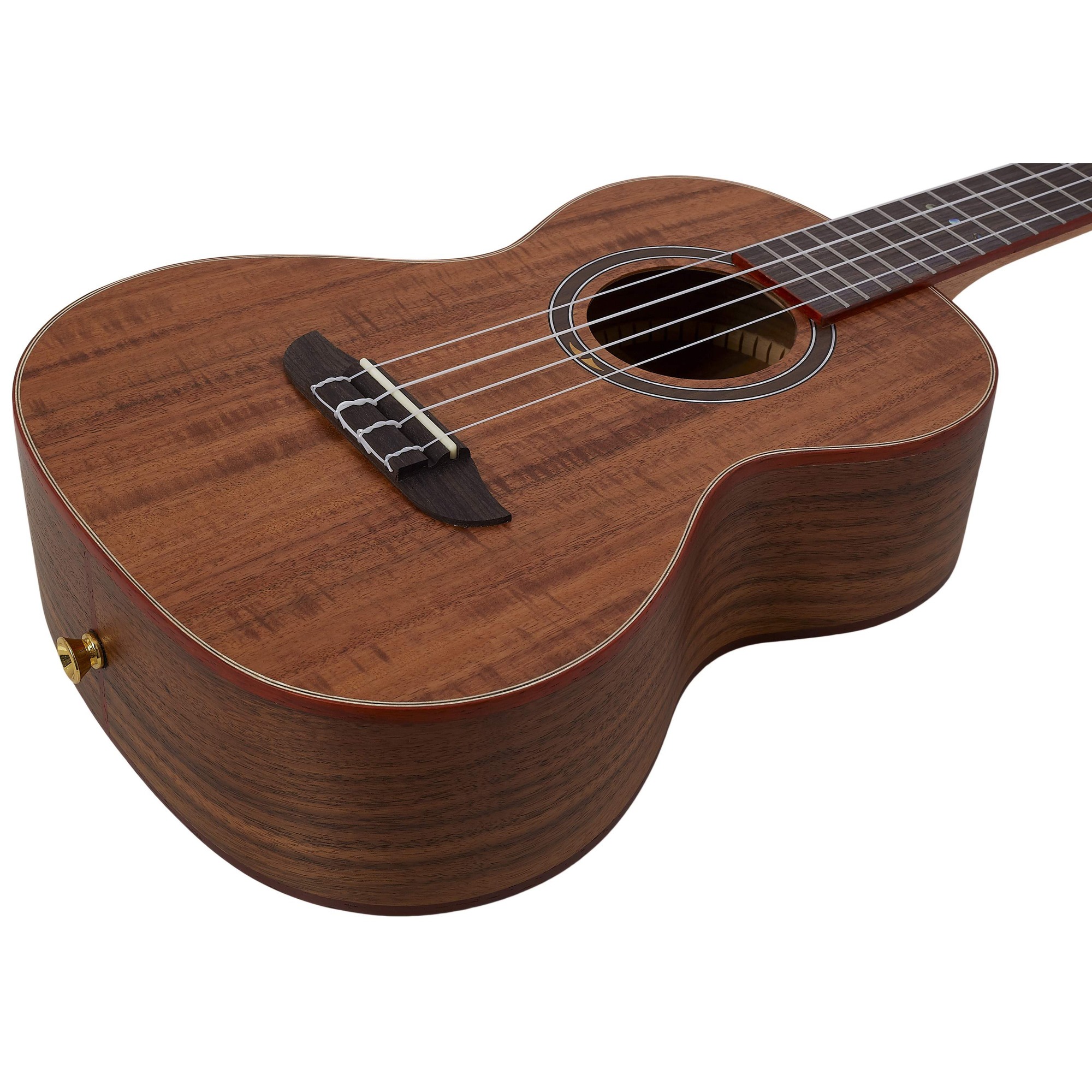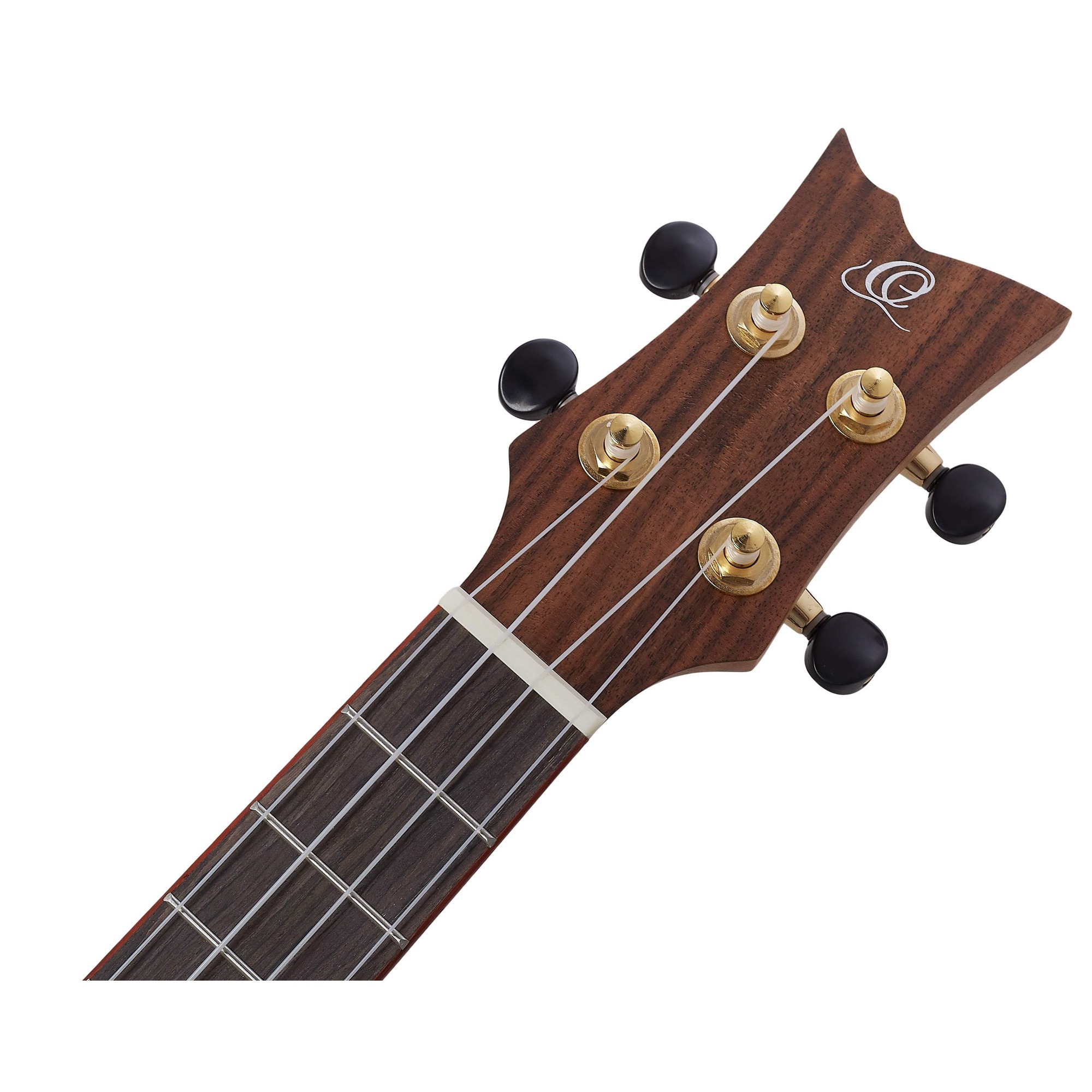 Это укулеле с корпусом размера "сопрано", для которого характерно очень "живое" и яркое звучания, настраивающее на дружелюбную и непринужденную атмосферу. Сам корпус укулеле изготовлен из массива акации и имеет отделку Open Pore, благодаря чему инструмент прекрасно резонирует, имеет великолепный внешний вид и может похвастаться ясным, сбалансированным тембром с мягкими верхними частотами. Гриф здесь выполнен из древесины окоуме, а его накладка на 18 ладов сделана из композитной древесины Tecwood. Бридж у данной модели также из композитной древесины. Литые колки золотистого цвета с черными ручками не только дополняют стильный облик инструмента, но и гарантируют точную, удобную настройку.