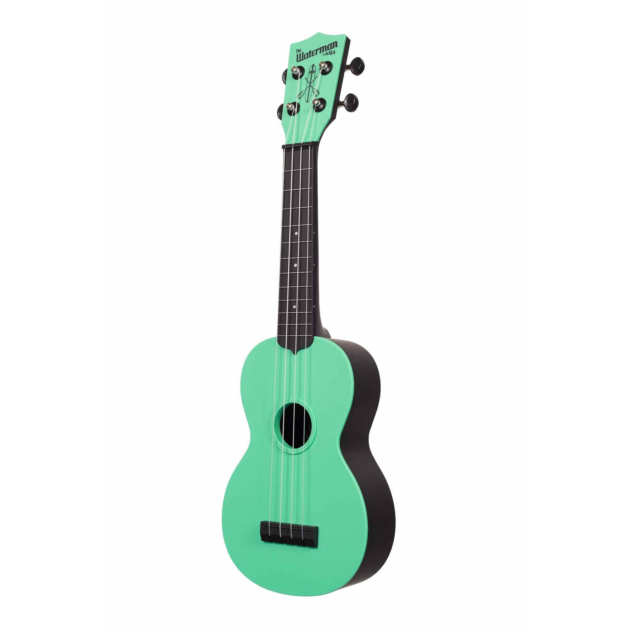 WATERMAN by KALA KA-SWB-GN Seafoam Green Matte Soprano Ukulele – укулеле в корпусе размера сопрано, модель начального уровня, которая позволит Вам быстро освоить инструмент и научиться играть любимые песни. Корпус представленной модели выполнен из прочного композитного АБС пластика. Такой материал делает инструмент прочным, износостойким, неприхотливым. Укулеле не боится воды, так что на этой модели можно играть в любом месте, не опасаясь за сохранность инструмента. Уход и очистка просты и необременительны. WATERMAN by KALA - идеальный выбор для обучения игре, в том числе занятий в музыкальной школе. Инструмент представлен в элегантном мятном цвете с матовой отделкой. Колки – открытые, никелированные. На грифе 12 ладов. Ширина накладки у порожка – 1,375 дюйма, у соединения грифа с корпусом – 1,625 дюйма. Гриф, накладка на гриф, порожек и седло также выполнены из композитного АБС пластика. Мензура – 13,75 дюйма, общая длина инструмента – 21 дюйм. Длина корпуса – 9,25 дюйма. Ширина корпуса в верхней части – 4,875, в нижней части – 6,25 дюйма, талия – 3,75. Глубина корпуса – 2,25 дюйма. На укулеле установлены струны Aquila Super Nylgut®.