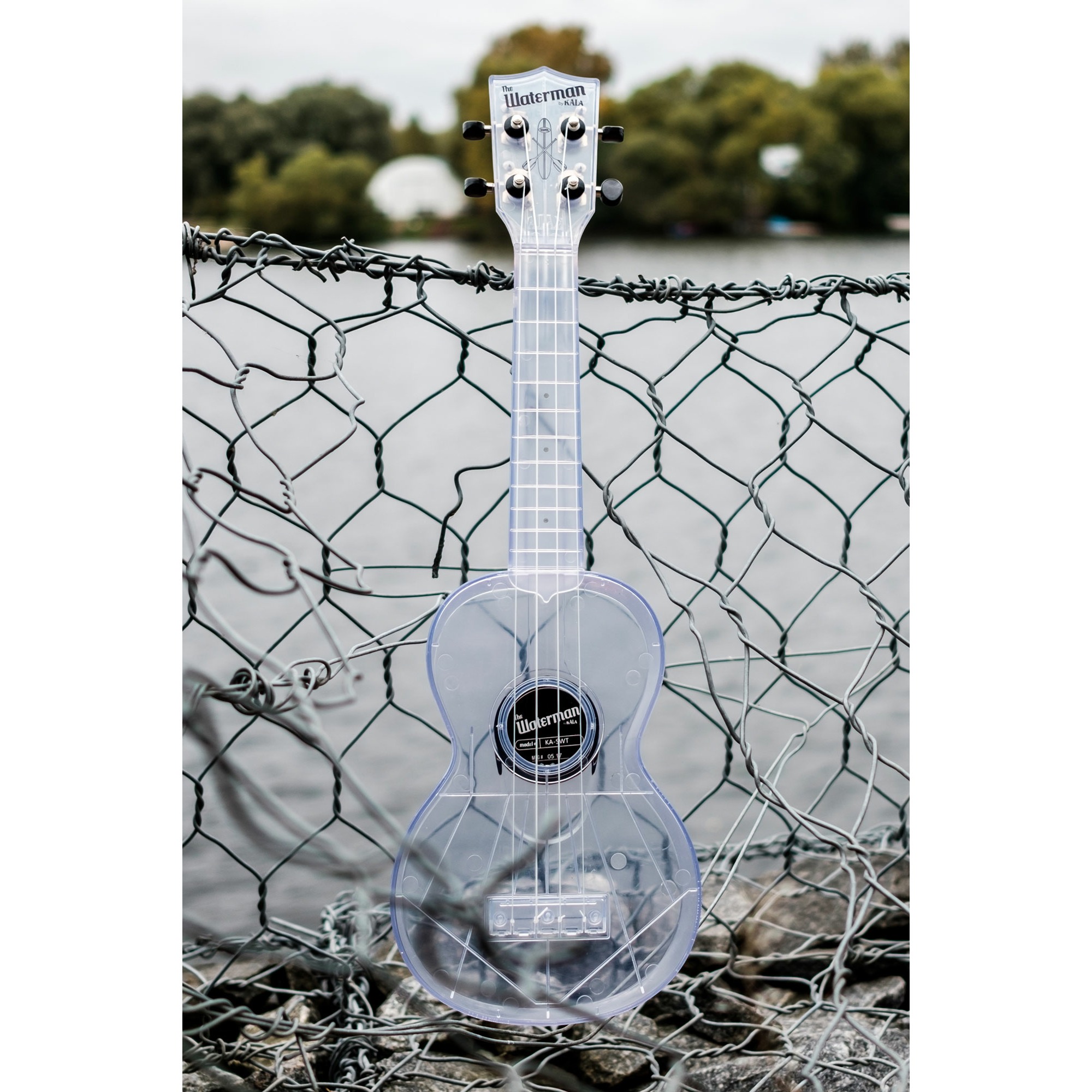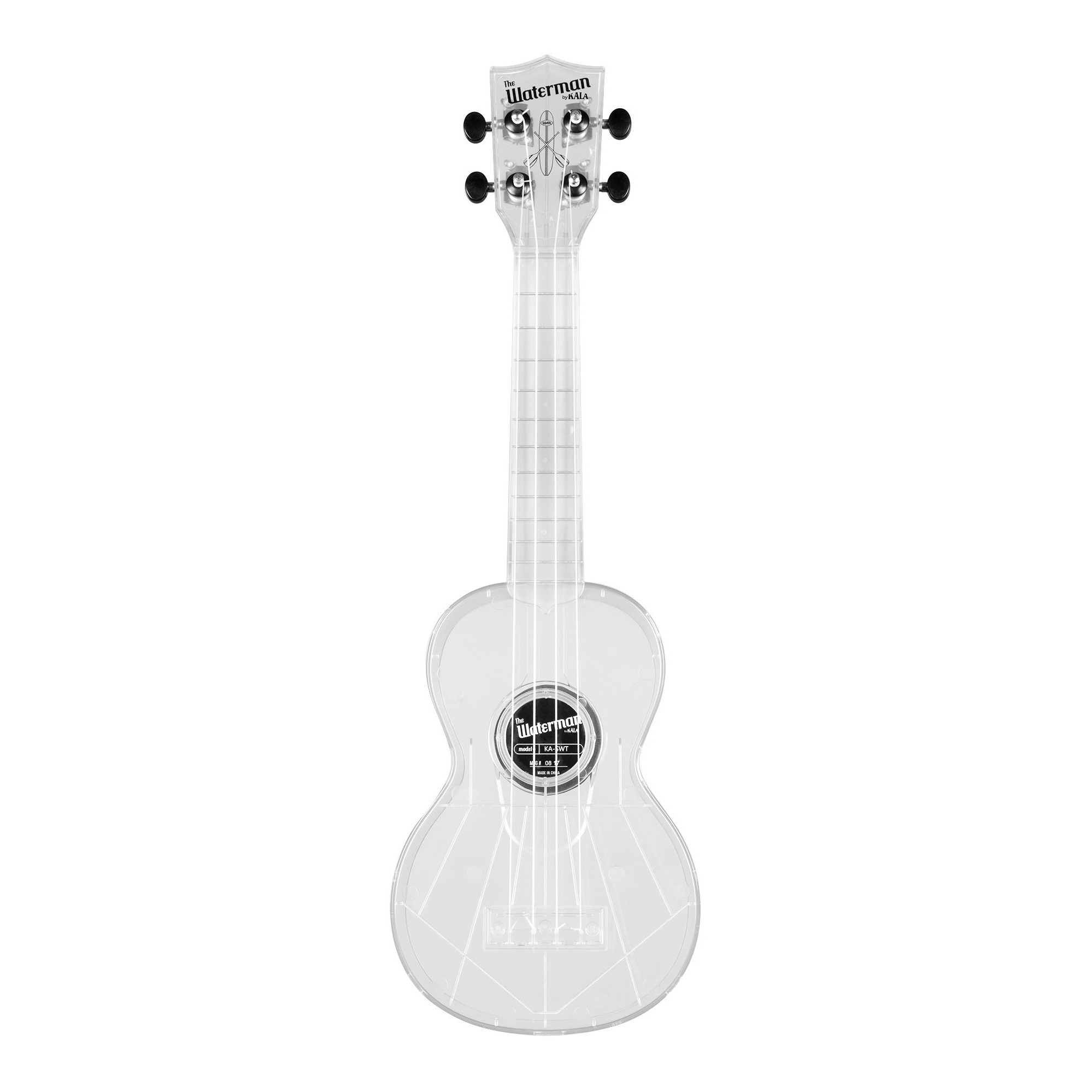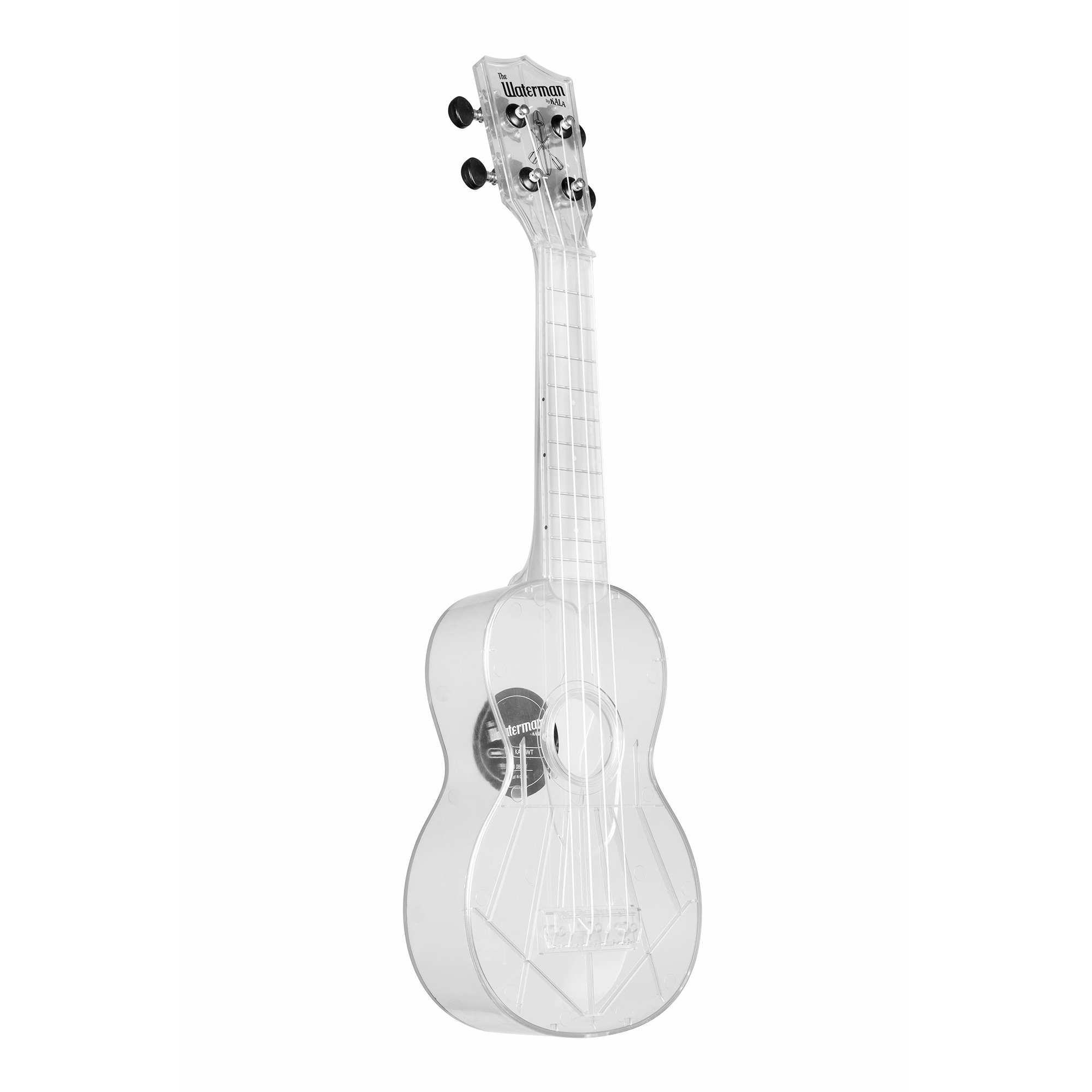 WATERMAN by KALA KA-SWT– укулеле в корпусе размера сопрано, модель начального уровня, которая позволит Вам быстро освоить инструмент и научиться играть любимые песни. Корпус представленной модели выполнен из прочного композитного АБС пластика. Такой материал делает инструмент прочным, износостойким, неприхотливым. Укулеле не боится воды, так что на этой модели можно играть в любом месте, не опасаясь за сохранность инструмента. Уход и очистка просты и необременительны. WATERMAN by KALA - идеальный выбор для обучения игре, в том числе занятий в музыкальной школе. Инструмент стильно и очень оригинально выглядит в прозрачном ледяном белом цвете «Transparent Ice» с глянцевой отделкой. Колки – открытые, никелированные. На грифе 12 ладов. Ширина накладки у порожка – 1,375 дюйма, у соединения грифа с корпусом – 1,625 дюйма. Гриф, накладка на гриф, порожек и седло также выполнены из композитного АБС пластика. Мензура – 13,75 дюйма, общая длина инструмента – 21 дюйм. Длина корпуса – 9,25 дюйма. Ширина корпуса в верхней части – 4,875, в нижней части – 6,25 дюйма, талия – 3,75. Глубина корпуса – 2,25 дюйма. На укулеле установлены струны Aquila Super Nylgut®.