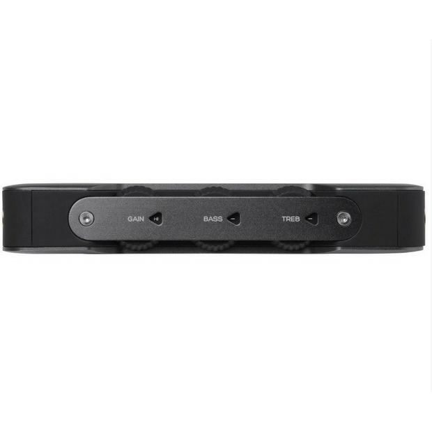 Усилитель получил цельный, хорошо защищенный от проникновения внешних помех алюминиевый корпус, выполненный в очень привлекательном дизайне и изготовленный с применением метода экструзии. В одну из его боковин интегрированы три поворотных регулятора, два из которых настраивают тембры ВЧ и НЧ (12 шагов, от - 3 дБ до + 9 дБ), а третий выбирает одно из трех доступных значений коэффициента усиления. На одном из торцов корпуса находится оригинальный металлический регулятор громкости с насечкой, а также два гнезда для подключения наушников — обычный несимметричный 3,5 мм разъем и 4-пиновый балансный сокет Mini XLR. На противоположном торце имеется линейный аналоговый 3,5 мм вход, совмещенный с оптическим входом. Там также присутствуют порты USB-A (поддерживает iOS-устройства) и USB Mini-B для подзарядки аккумулятора и подключения источника, в качестве которого, к примеру, может выступать компьютер, ноутбук или смартфон с ОС Android 4.0 (и выше) и функцией OTG. Для выбора между входами предусмотрен переключатель. Там же установлен 3,5 мм линейный выход. При подсоединении к компьютеру поддерживаются ОС Windows (требуется установка драйвера), Linux и Mac. Модель может выступать в роли источника питания для смартфонов, планшетов и др. гаджетов.
