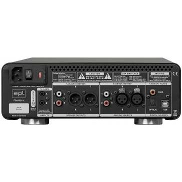 SPL Phonitor х это не только усилитель для наушников, но и полноценный стереофонический предварительный усилитель. Предусмотрено подключение до пяти стереофонических источников. Два аналоговых разъёма XLR служат для подключения балансного источника сигнала, пара разъёмов RCA для небалансного. С помощью установки опционального цифро-аналогового преобразователя можно подключить еще три цифровых источника стереозвука через USB, коаксиальный и оптический разъемы. Активные акустические системы или усилитель мощности вы можете подключить непосредственно к SPL Phonitor х. Выходные разъемы на задней панели прибора обеспечивают как балансное (разъёмы XLR), так и небалансное (RCA) подключение.