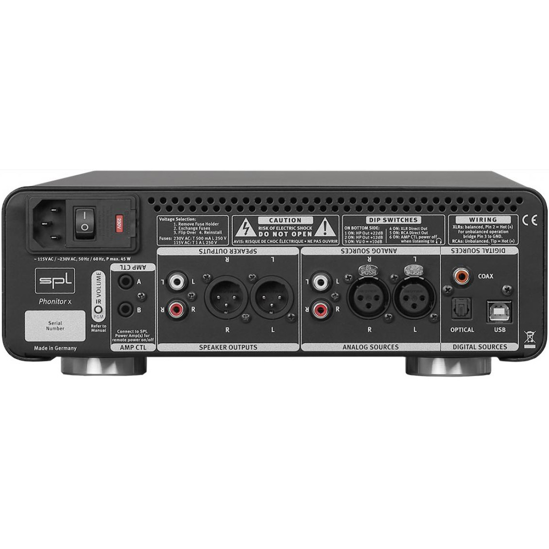 SPL Phonitor X+DAC768xs -б алансный усилитель для наушников/пред. усилитель с встроеным ЦАП (Входы: XLR, RCA, AES/EBU, Coaxial, TOSLINK, USB (B), выходы: балансный 4-pin XLR, Jack 6,35mm, XLR, RCA). Ширина передней панели 278мм.