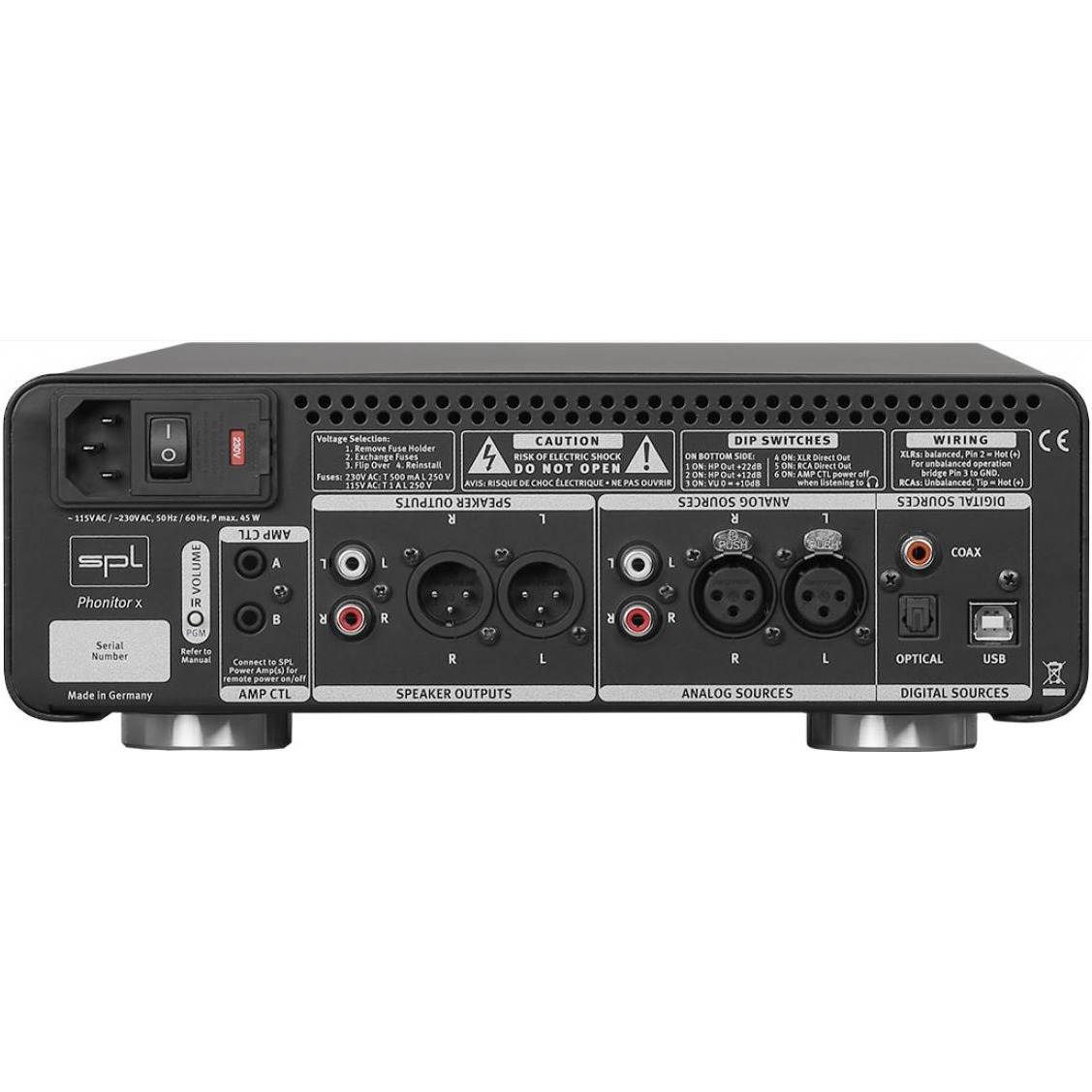 SPL Phonitor X+DAC768xs -б алансный усилитель для наушников/пред. усилитель с встроеным ЦАП (Входы: XLR, RCA, AES/EBU, Coaxial, TOSLINK, USB (B), выходы: балансный 4-pin XLR, Jack 6,35mm, XLR, RCA). Ширина передней панели 278мм.