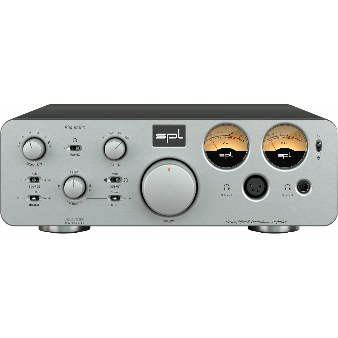 Функция Phonitor-Matrix упрощена в этом приборе, потому что SPL Phonitor х предназначен исключительно для воспроизведения звука. Такие регулировки, как Center Level, Solo и Polarity используются только в музыкальном производстве, поэтому в Phonitor х они отсутствуют. Также был уменьшен выбор виртуальных углов расположения акустических систем с шести до четырех, при этом исключены углы 15° и 75° градусов.