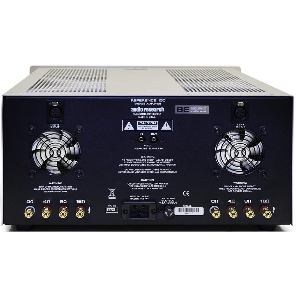 Audio Research Reference 150 SE Silver усилитель мощности. Потребляемая мощность модели 730 Вт, отношение сигнал/шум 114 дБ, коэффициент гармоник 0.03 %.