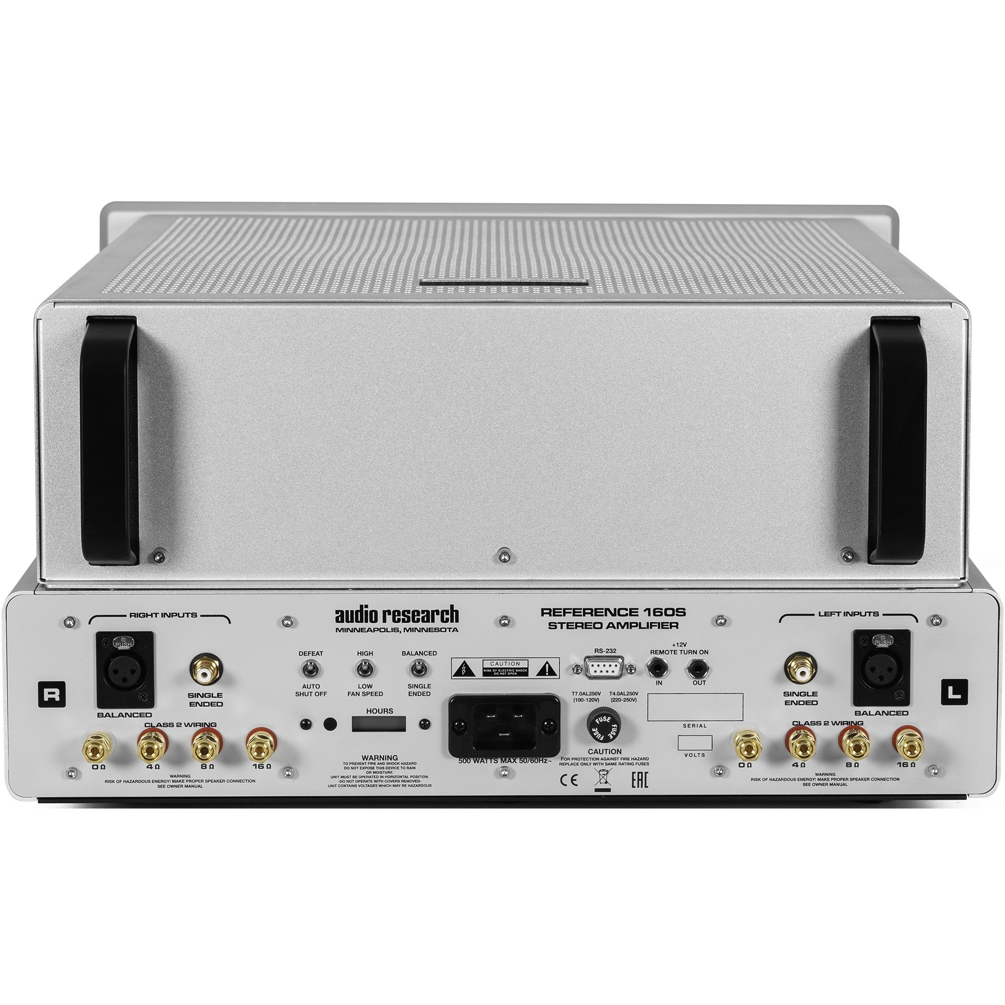 При весе 45.5 кг Audio Research Reference 160S снабжен двумя ручками, призванными «повысить мобильность» устройства. Как и в предшественнике, перед лампами эффектно располагается стрелочная индикация с двумя индикаторами на прозрачной панели.