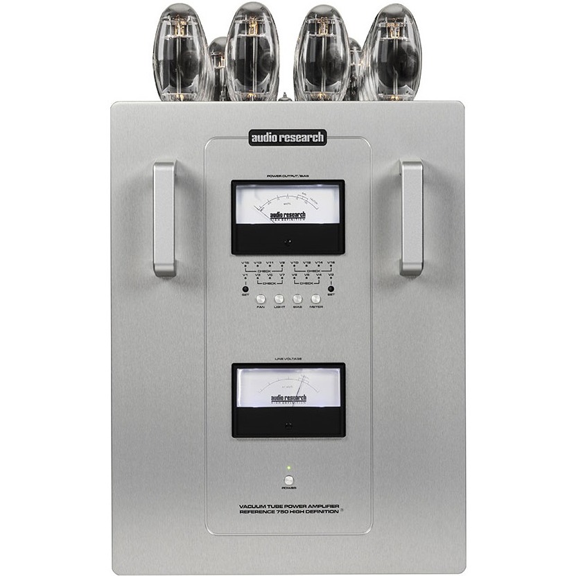 Audio Research в своих усилителях мощности серии Reference использует подобранные комплекты ламп KT 120 Российского производства (Sovtek). В случае с моделью Reference 750 в схеме усиления используется 16 таких ламп, которые позволяют выдавать 750 Вт мощности и управлять практически любыми АС в режимах 4, 8 и 16 Ом. Использование этих ламп позволяет избежать нежелательных искажений. В блоке питания используются лампы 6550WE и 6H30. Схема смещения контролируется двумя KT120, которые управляют восемью лампами каждая. На передней панели усилителей есть стрелочные индикаторы, с помощью которых можно контролировать мощность и настраивать ток смещения. Все усилители мощности серии Reference имеют 20-ти амперный разъём питания.