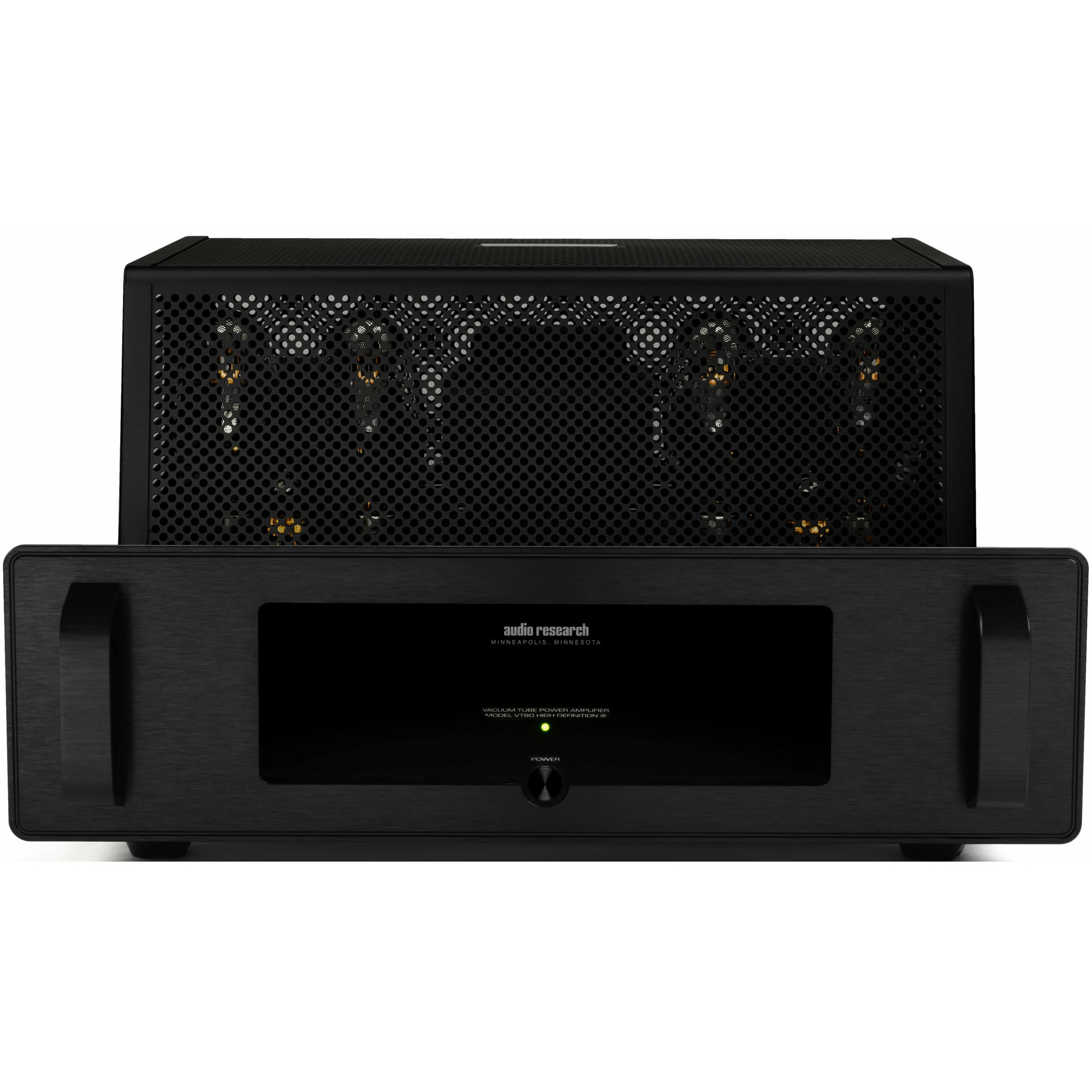 Корпус усилителя Audio Research VT80 имеет классические очертания: лампы входного каскада 6H30 расположены ближе к слушателю, за ними возвышаются выходные КТ120, а трансформаторы установлены в ряд у задней панели. Для аппарата ценой более 700 тысяч выглядит он, на мой взгляд, с закрытой крышкой чересчур скромно — глазу практически не за что зацепиться. Впрочем, снять крышку не так уж сложно. На передней панели ручки для переноски, как у рэковых компонентов, но в таком положении я бы его носить не стал, да и в стойку его не поставишь.