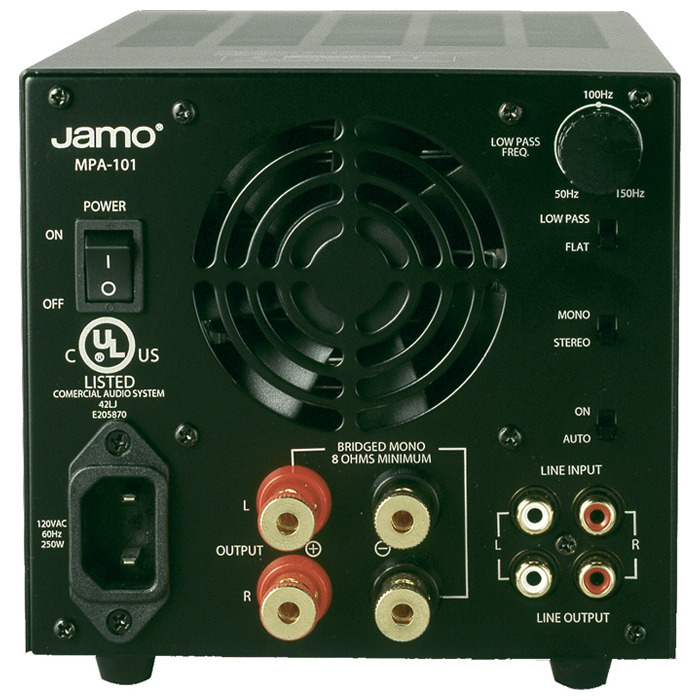 Модель MPA-201 имеет выходную мощность 100х2 Вт на нагрузке 4 ома (в мостовом режиме – 200х1 Вт/4 ома). Он имеет линейные вход/выход для последовательного соединения нескольких усилителей мощности в общую цепь. MPA-201 усиливает сигналы для акустики в полном диапазоне частот (20–20000 Гц), а при установке режима фильтрации Low Pass он работает как НЧ-усилитель мощности для пассивных сабвуферов. Усилитель оснащен функцией автоматического включения/выключения по наличию входного сигнала вне зависимости от того, в каком состоянии он находился (функцию можно отключить).