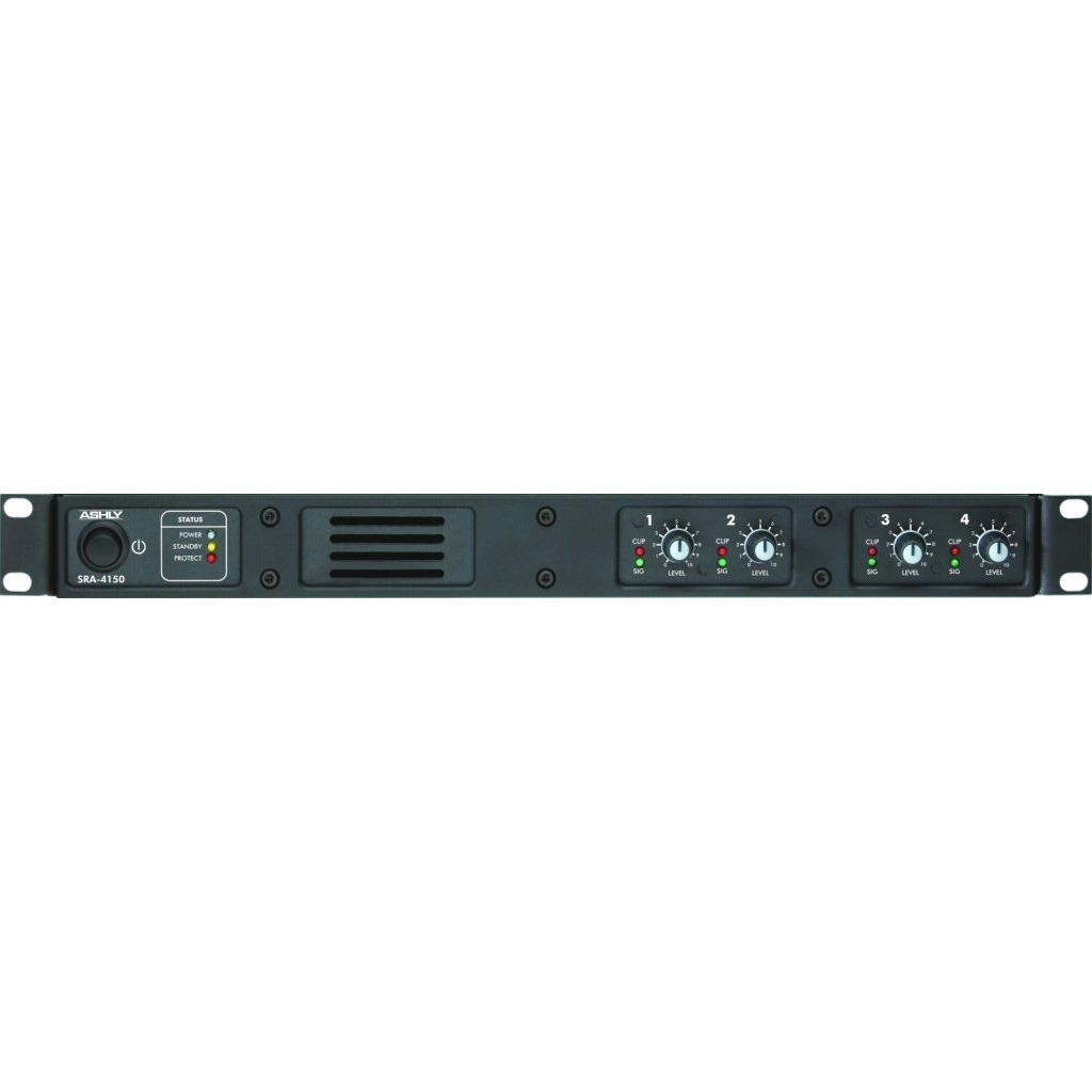 Ashly SRA-4150 – это профессиональный четырёхканальный инсталляционный усилитель мощности класса D в рэковом форм-факторе высотой 1U. У него конвекционное безвентиляторное охлаждение, а на передней панели есть все необходимые светодиодные индикаторы и ручки регулировки громкости сигнала, отдельные для каждого канала. Сверхмалый вес в 4,5 килограмма.