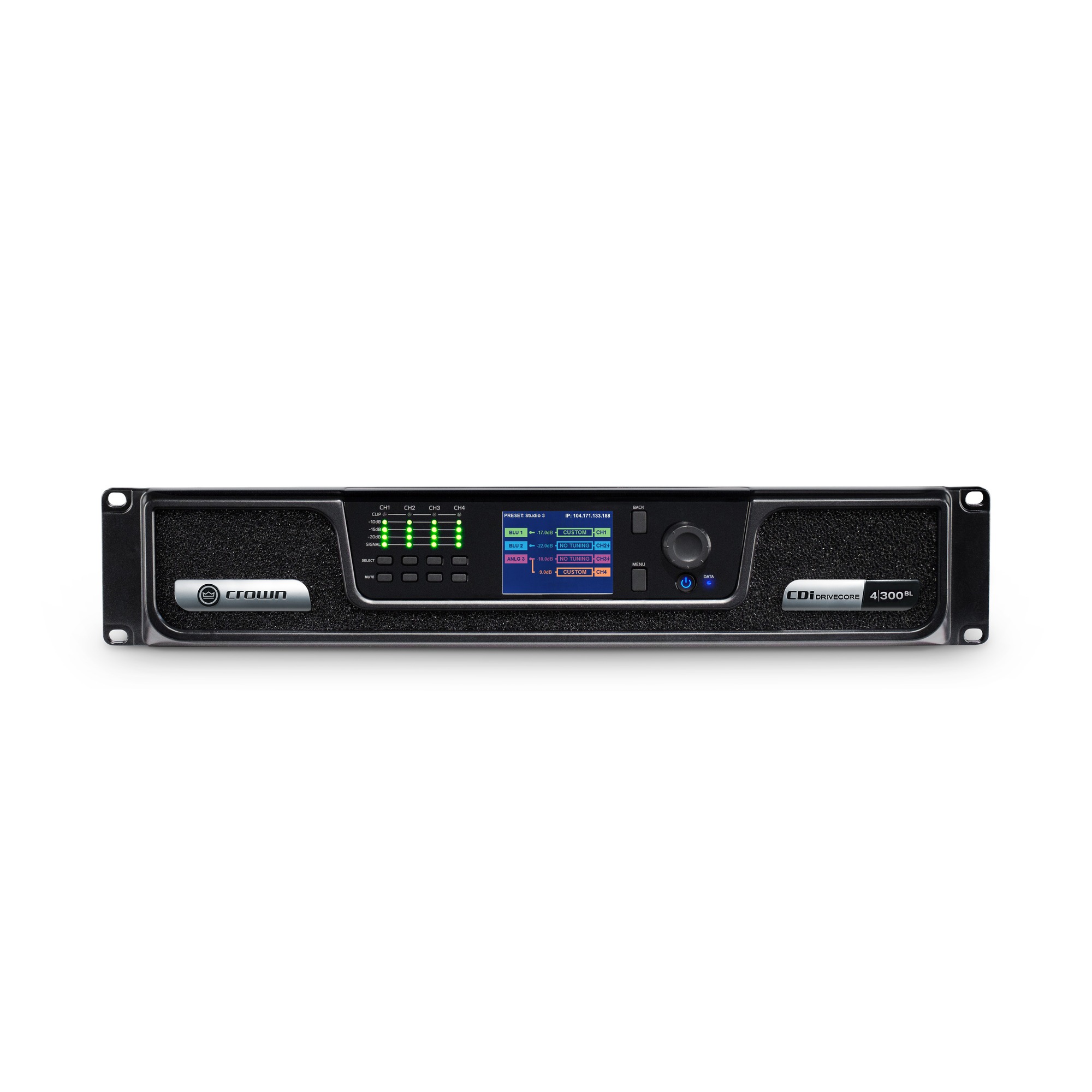 Кроме того, цифровая схема Crown CDi DriveCore 4|300BL позволяет один канал усилителя нагрузить низкоомными громкоговорителям, а другой – 70/100-вольтовыми простым выбором режима работы каждого канала. Эта необыкновенная гибкость существенно упрощает сложные инсталляции с разными типами акустических систем, а возможность размещения 2, 4 и даже 8 независимых каналов усиления в стандартном 2U корпусе выводит компанию Crown в лидеры на рынке.