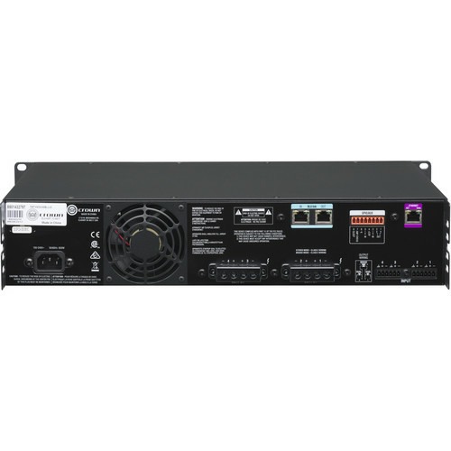 Инсталляционный усилитель Crown CDi 4600BL располагает четырьмя каналами, мощностью 4x600 Вт при нагрузке 4 Ом, аналоговыми входами и цифровым интерфейсом BLU-Link. Используется эксклюзивная технология DriveCore - интегральная схема сочетает в себе сотни дискретных цепей в одном чипе для улучшения производительности, снижения энергопотребления и повышения надёжности. Имеется 32-битный DSP, в котором реализованы функции задержки, PEQ на 8 полос, лимитеры LevelMAX и кроссовер. Режим экономии энергии - потребляемая мощность в режиме ожидания составляет менее 1W. Автоматический режим ожидания - усилитель переходит в спящий режим после 30 минут отсутствия входного сигнала. Дистанционное отключение питания - спящий режим активируется через AUX порт. 35 Hz Hi-Pass фильтр включается автоматически при выборе высокоомного (70V, 100V) режима. Система TLC защищает усилитель от искажений и обеспечивает стабильную работу и в случае необходимости понижает усиление. Расширенные защитные схемы - обеспечивается защита от перегрева, короткого замыкания, постоянного тока, несоответствия нагрузки, избыточного или пониженного напряжения, перегрузки. Импульсная схема питания (PFC).