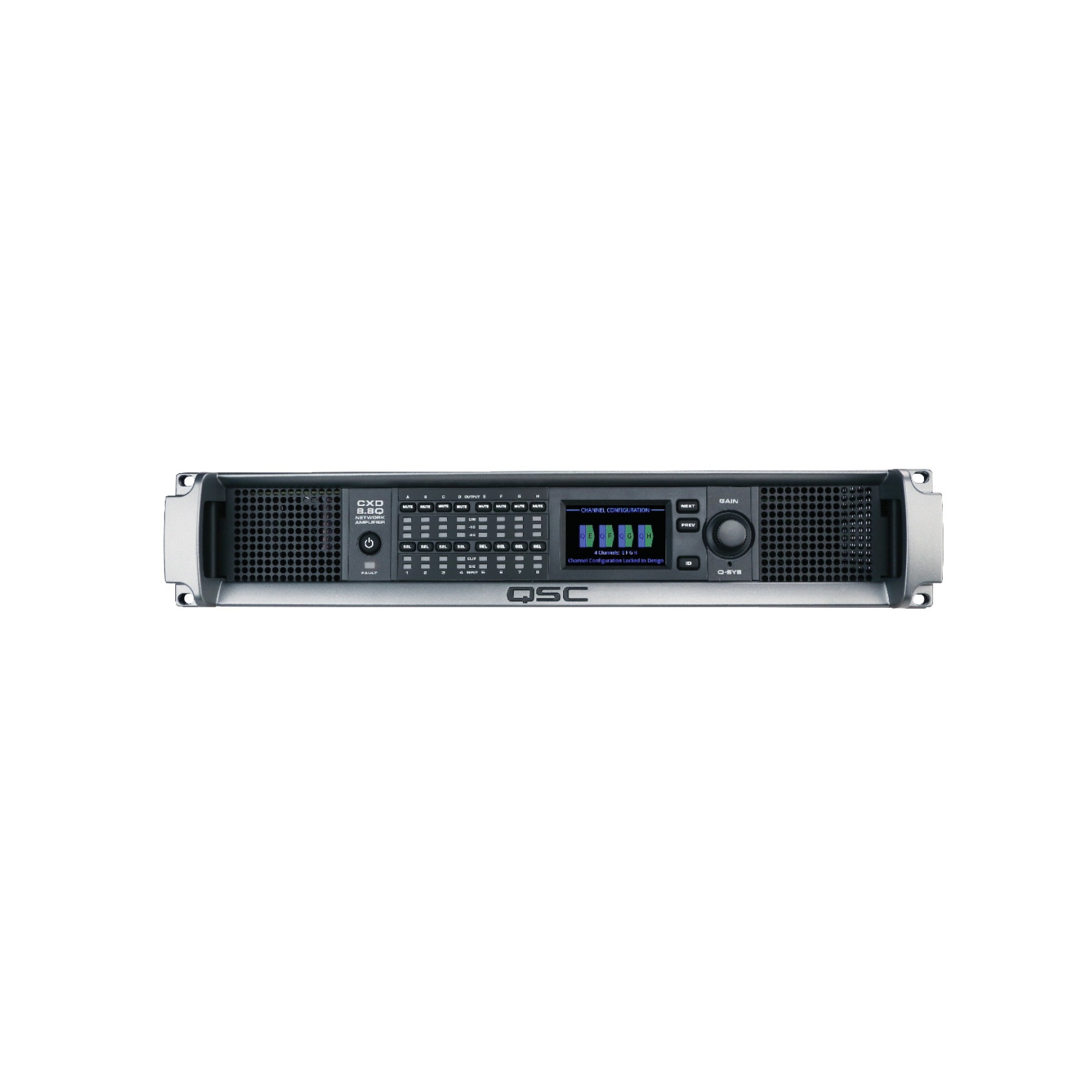 QSC CXD8.8-Q 8-канальный усилитель с DSP обработкой - интеграция Q-SYS ™ с транспортом и управлением аудио через стандартные протоколы и оборудование Gigabit Ethernet, восемь микрофонных / линейных входных канала на задней панели усилителей CXD-Q серии, соединения громкоговорителей Euroblock с сенсорным экраном.