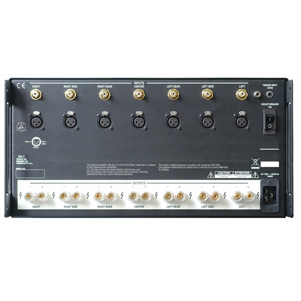 Тип - усилитель мощности, Количество каналов - 7, Интерфейсы - входы коаксиальный x7, балансный x7, триггер x1, Разъемы для акустики - винтовые, Позолоченные разъемы - есть, Питание - блок питания встроенный, Особенности Входы - 7 линейных rca, 7 балансных.