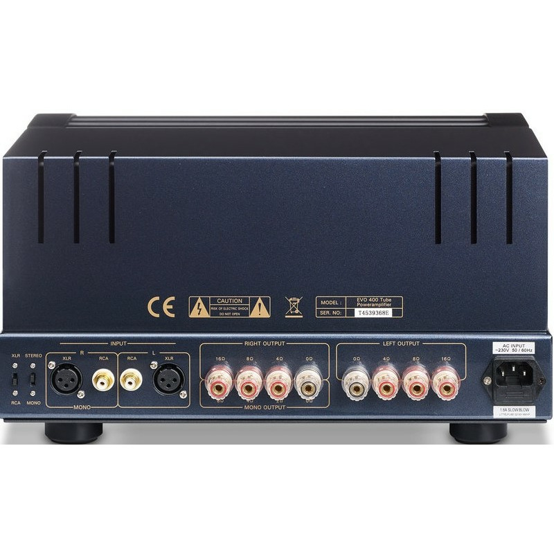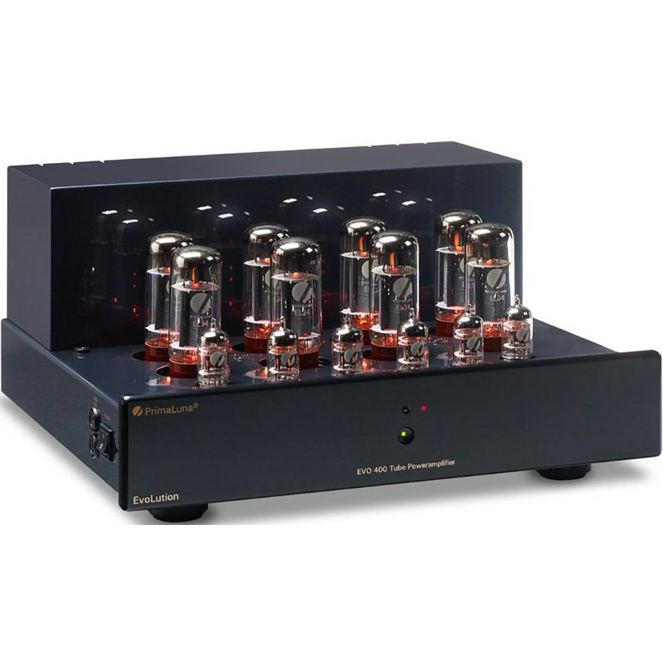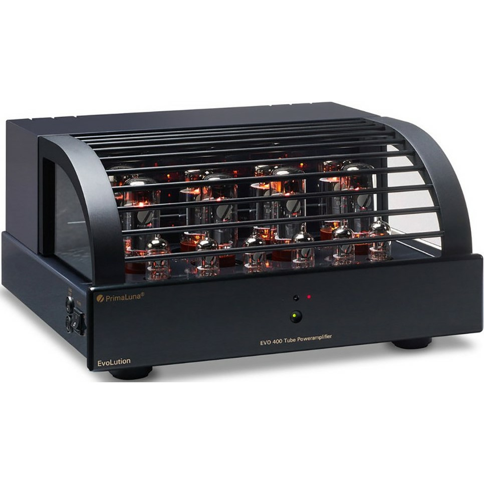 На смену заслужившим превосходную репутацию усилителям серий Prologue и Dialogue голландская компания выпустила новую серию – EVO. В ней на сегодня по четыре модели предусилителей, интегрированных усилителей и усилителей мощности. PrimaLuna EVO 400 Power – это старший из четырех усилителей мощности, выдающий на лампах EL34 в триодном режиме работы 2 х 38 Вт или 2 х 70 Вт – в ультралинейном режиме. Он может также работать на лампах KT88 / KT120 / KT150, выдавая соответственно 2 х 43 / 2 х 45 / 2 х 51 Вт в триодном режиме или 2 х 72 / 2 х 85 / 2 х 89 Вт – в ультралинейном режиме.